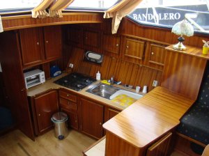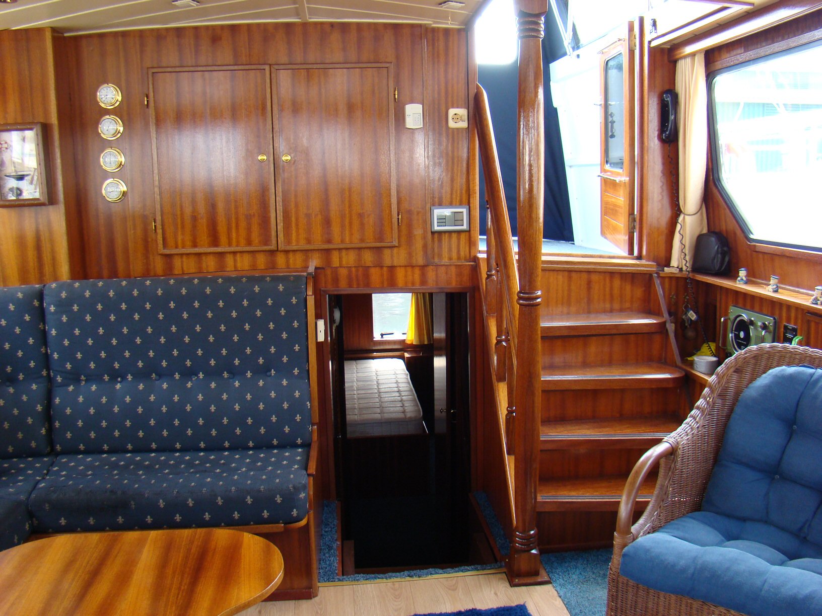 Prijs leek in eerste instantie wel gunstig: vraagprijs 155.000 euro. Schip had weinig gevaren (300 uren) en was altijd bewoond door de eigenaar. Voordeel: lage doorvaarthoogte. Nadeel: cabriokap is niet echt dicht en ingang naar kajuit is klein. Geen gebruik van losse of eigen meubelen mogelijk (past er niet door). Na 4 weken ben ik nog een keer terug geweest en heb me nog verdiept in de techniek van het schip, maar dat viel dus erg tegen: matige isolatie, amateuristische bedrading en elektra, motortruimte rommelig en onprofessionele aansluitingen en inrichting. Motor was maar 130 PK en dat is net te weinig, zeker als je ooit overweegt een snel stromende rivier zoals de Rijn op te varen.