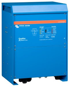 Uiteindelijk moet de accubank worden bijgeladen en in de avondperiode wanneer er wordt gekookt en het stroomverbruik het hoogst is, zal er voldoende vermogen moeten zijn. Bij gebruik van 8 kW Quattro is het effectief beschikbaar vermogen 7 kW bij 30A, evt. piek tot 16 kW. Quattro 5 kW levert maximaal 20A bij, bij 4500 W en piek van 10 kW. Bij gebruik van generator van 6 kW is er effctief 5 kW (21.7 A) beschikbaar. Bij gebruik van generator van 10 kW is er effctief 9 kW (39 A) beschikbaar.