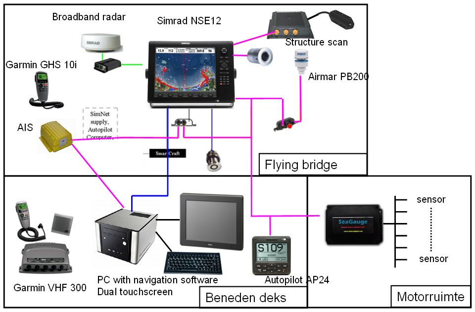 Al met al lijkt me dat zo een prima oplossing. Het is allemaal nog wat prematuur, want echt varen gaan we pas als het jacht klaar is, maar ik heb zo wel mijn gedachtes op een rijtje en kan eventueel rekening houden met wel of niet trekken van extra kabels. Blijf ik bij een NMEA2000 bussysteem, dan zou er dus slechts 1 kabel met wat zijtakken nodig zijn die vanuit de motorkamer naar de bedieningspositie benedendeks loopt en dan naar de bedieningspositie op de flying bridge.