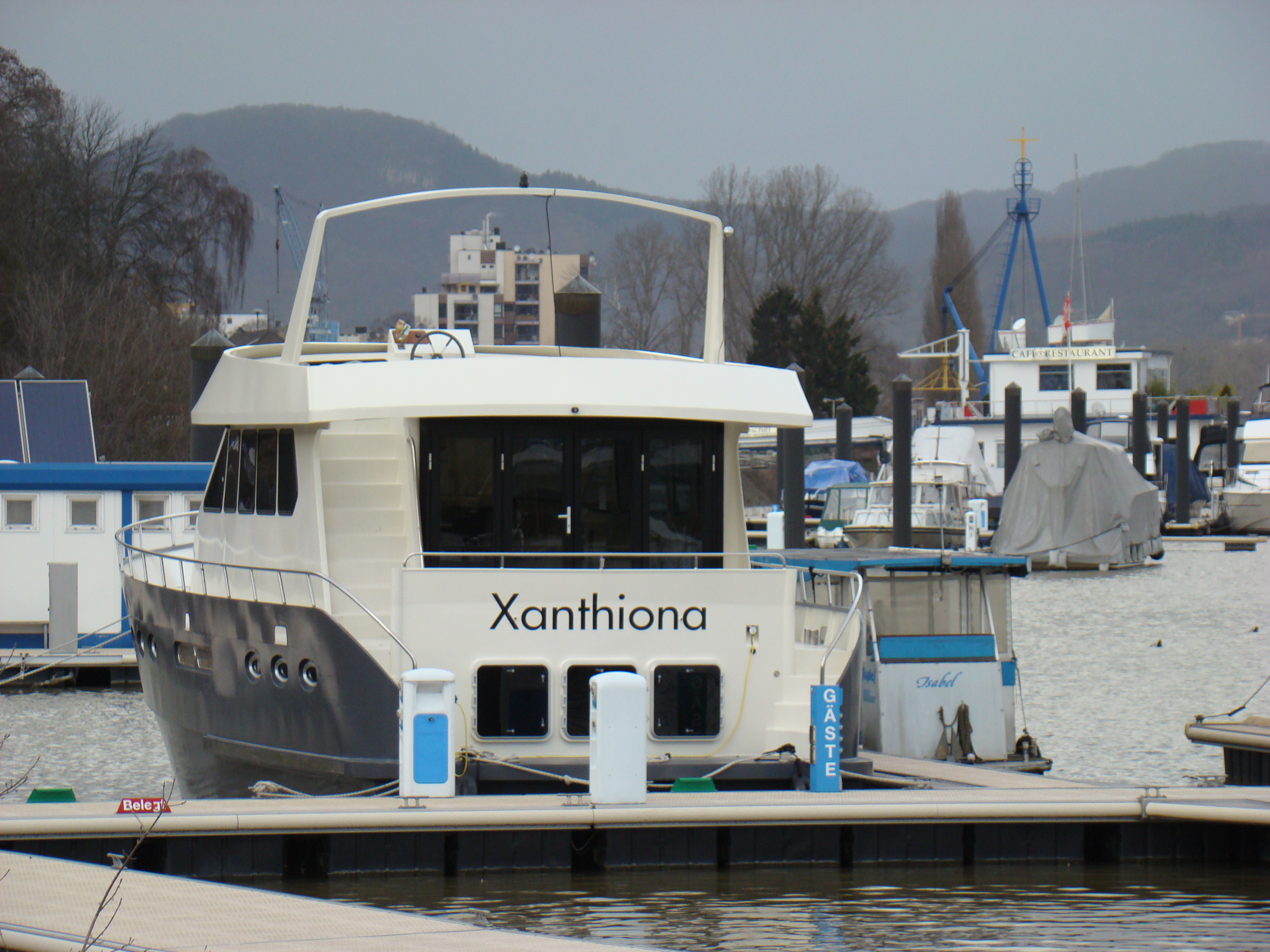 Sinds vorige week is ons motorjacht Xanthiona in Oberwinter, een jachthaven vlakbij Bonn. Ik werk in Bonn, nu nog 2.5 jaar. Aan de binnenkant van de Xanthiona is 5 cm pur-isolatie laag gespoten. Voor de reis naar Oberwinter heb ik de CV geinstalleerd en provisorisch enkele radiatoren geplaatst. De CV is een combi-CV dus ik heb ook warm water bij een tijdelijk wasbakje. Het toekomstig electrische toilet is aangesloten op de vuilwatertank en wacht op zijn definitieve plaats. Voor de rest bivakeer ik op wat campingstoelen en tafel en een veldbed is een tijdelijke oplossing om te slapen. In de tijd dat ik nog in Bonn werk ga ik ’s avonds het interieur afmaken.
