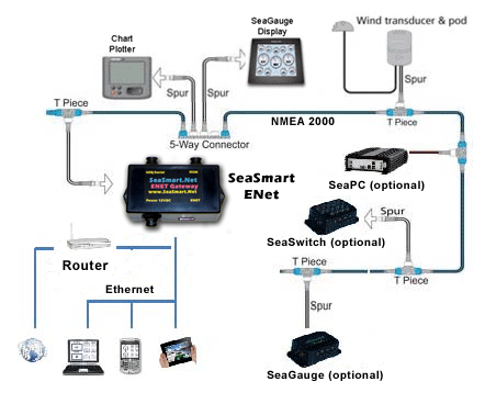 Er zijn meerdere leveranciers die een vergelijkbare internet gateway in combinatie met een cloud service bieden, zoals bijvoorbeeld SeaSmart met zijn SeaSmart E-net. De configuratie ziet er dan als volgt uit: