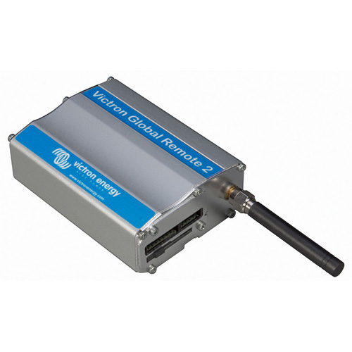 Victron heeft de Global Remote, dit is een GSM/GPRS modem. De Global Remote kan verbonden worden via de MK2 interface op de VE-bus aansluiting van de Victron Quattro. Ook kan de accumonitor BMV600/700 via de BMV datalink worden aangesloten op Global Remote. De status en alarmen worden via SMS tekst berichten doorgegeven aan een mobiele telefoon. De gelogde data kan ook via GPRS/GSM/4G verbinding naar het Victron portal worden doorgestuurd, waar alle gegevens gelezen kunnen worden.