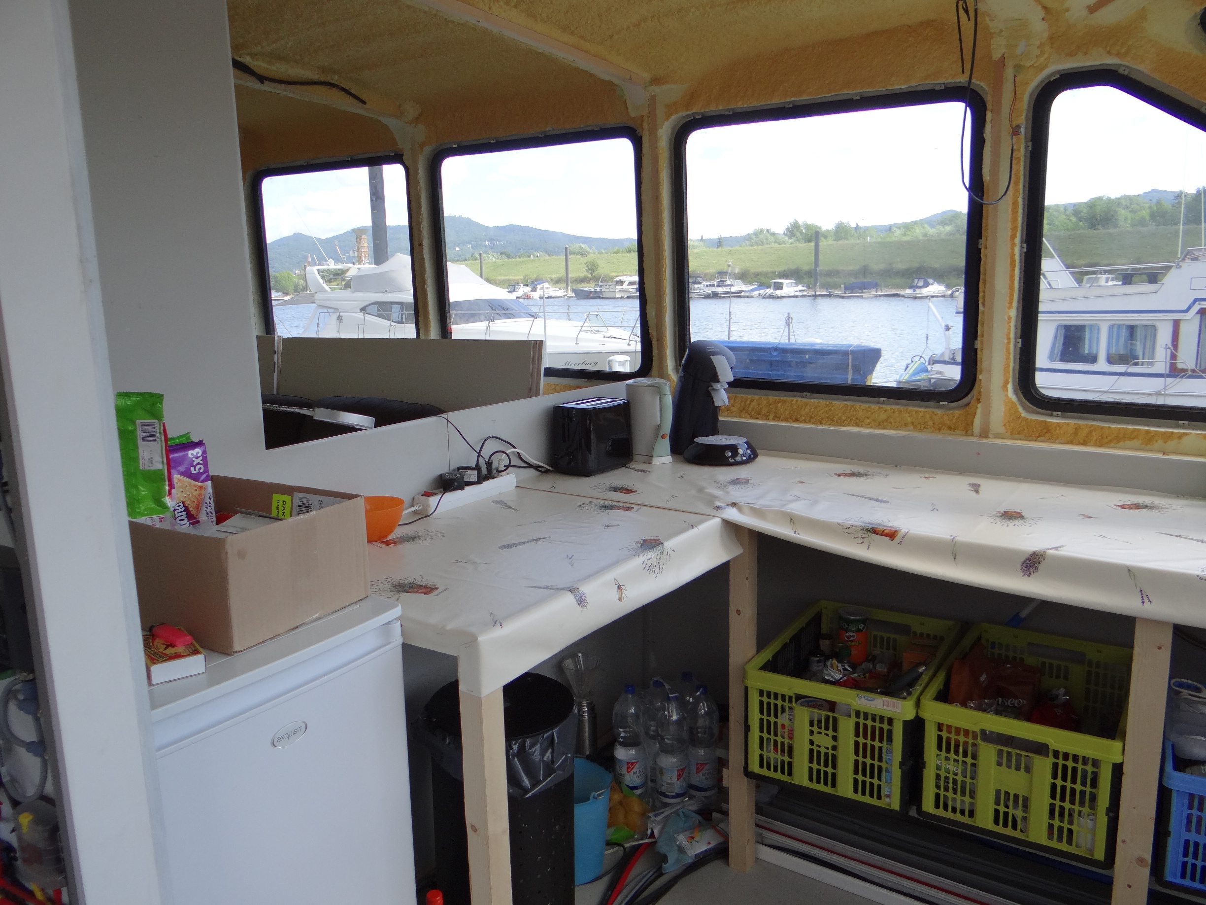 Tijdelijke en toekomstige keuken motorjacht Xanthiona
