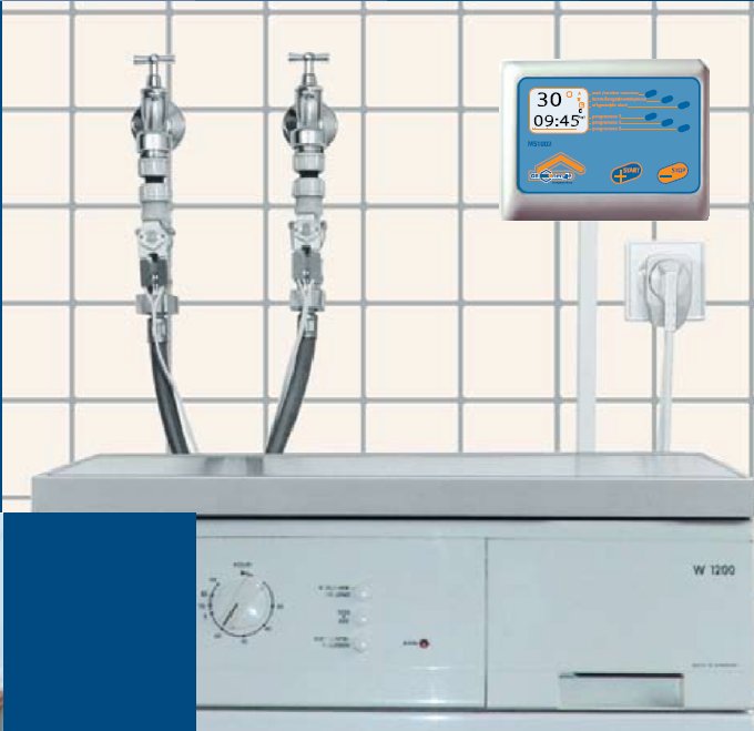 wasmachine niet. Die heeft echt nog koud water nodig voor het spoelen en bepaalde programma’s. Gelukkig biedt het internet overal eenoplossing voor en na enige speurwerk kwam ik terecht bij de term ‘hot fill’. Er zijn wasmachines met een ‘hot fill’ aansluiting, maar die zijn duur. Handiger is een ‘voorschakelapparaat’ te gebruiken als ‘hot fill’. De MS 1002 is zo’n apparaat en kost ca. 225 euro. Op het apparaat sluit je warm en koud water aan en je programmeert het een beetje en je wast veel energiezuiniger.