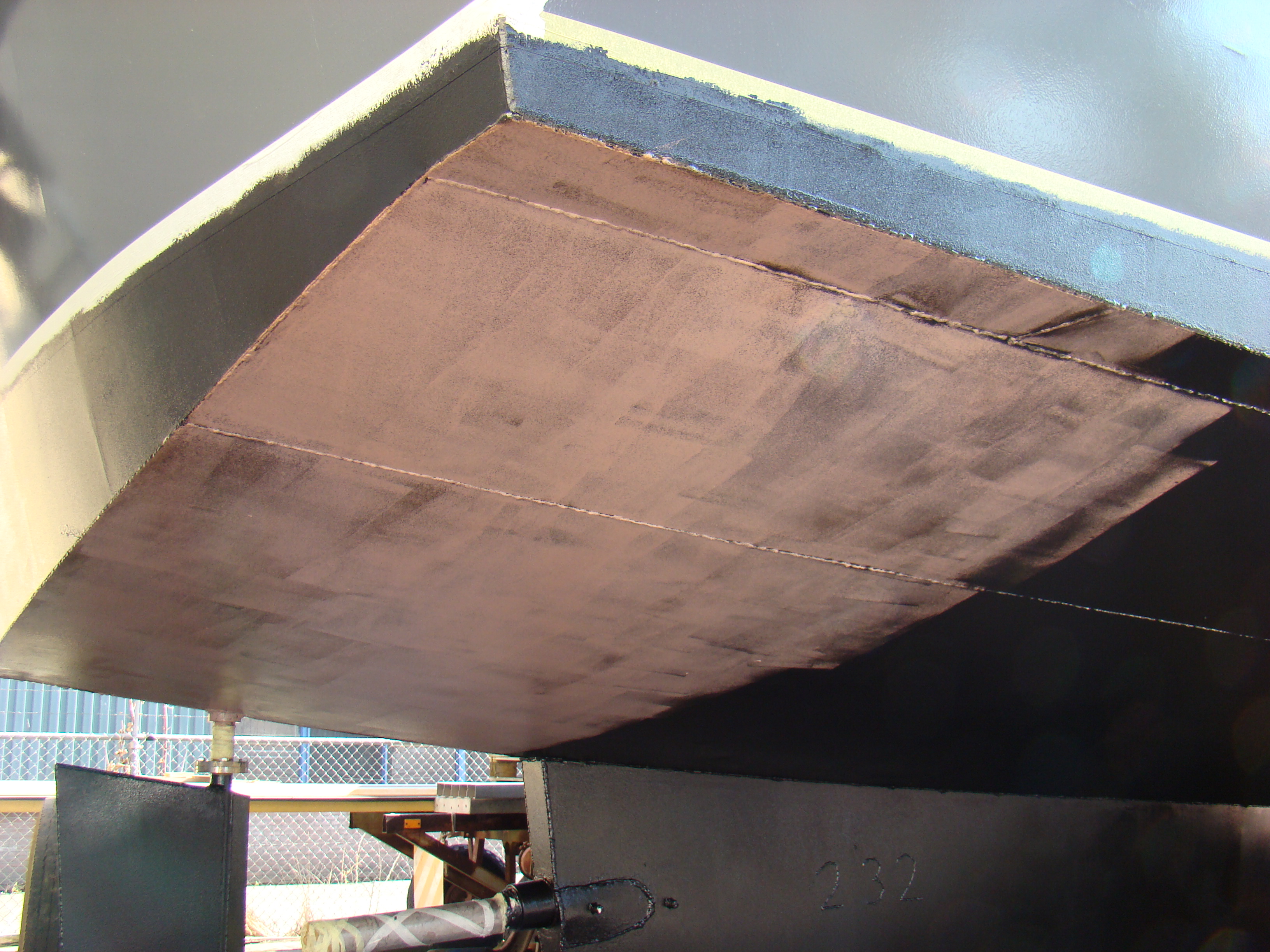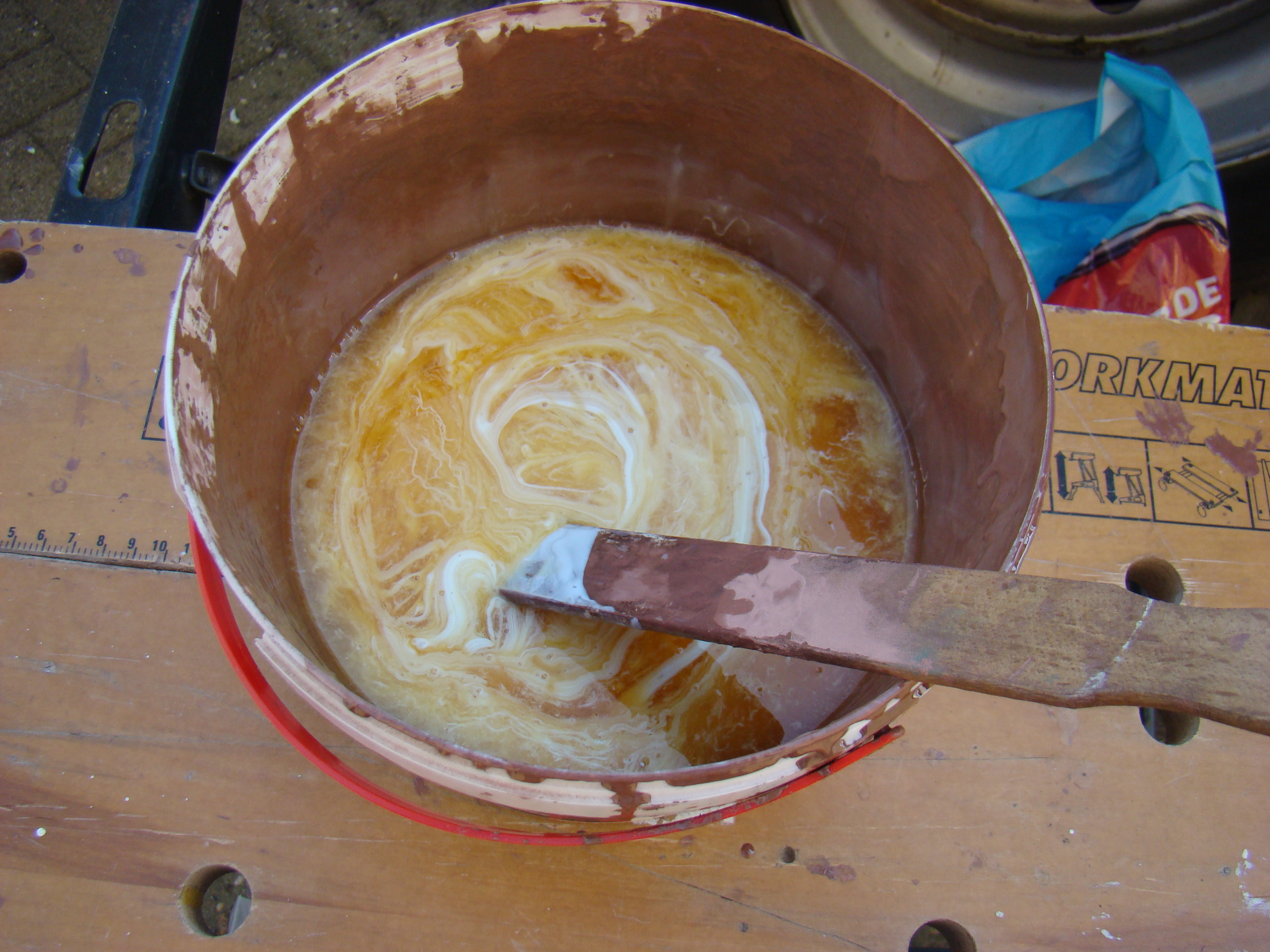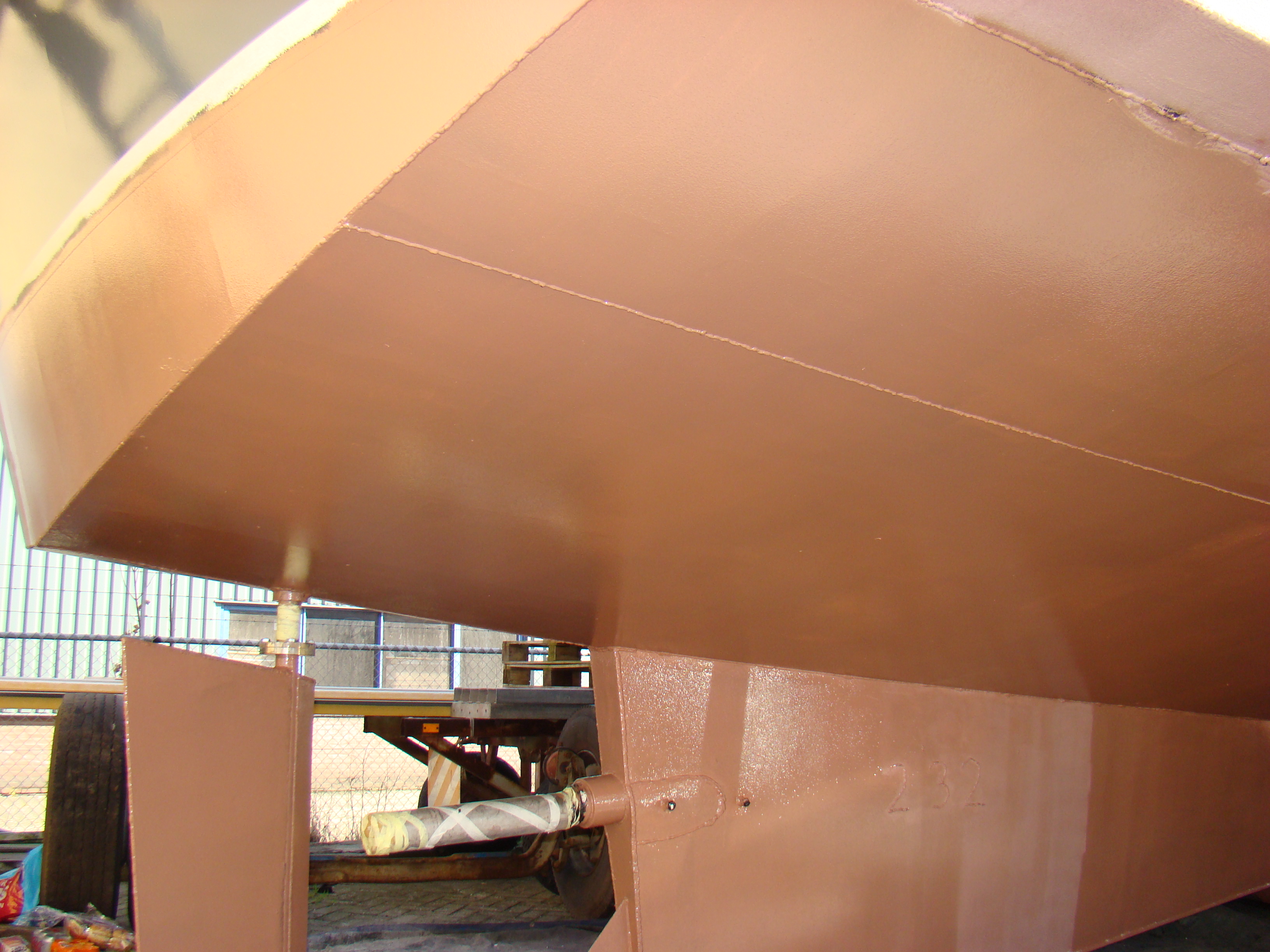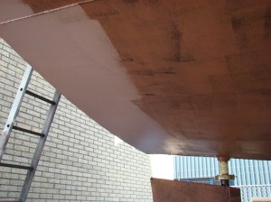 Kwart voor 5 waren we klaar, ietsje eerder dan volgens de planning want we hadden tijdelijk nog wat extra hulp en werd er met 3 man gesmeerd op de zijkant. Uiteindelijk 19 pakketten Coppercoat zijn er op gegaan.