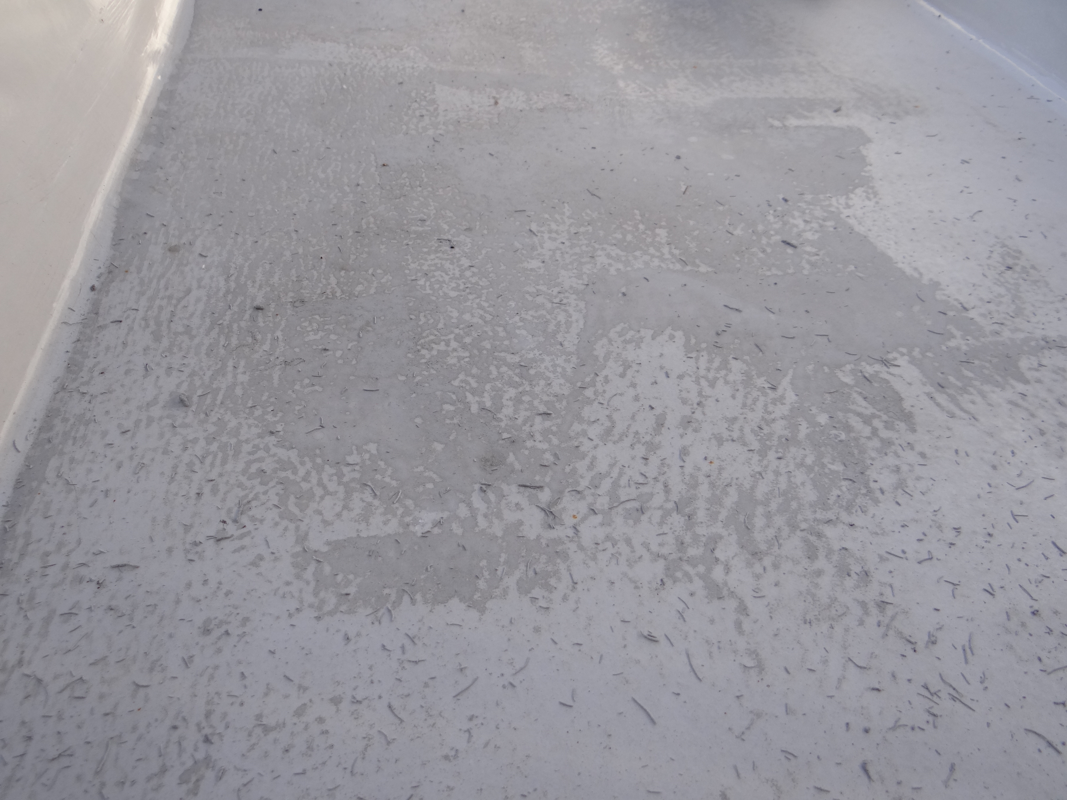 Vlak voor de levering van ons motorjacht Xanthiona, nu al weer bijna een jaar geleden, werd het gangboord en het dek geschilderd door de jachtwerf. Helaas is dat bijzonder slecht gedaan, ik vermoed o.a. dat men vergeten is de harder bij de 2 componenten verf te mengen. Dit resulteerde in een dek dat heel erg vies werd, vermoedelijk door de zachte toplaag. Je ziet op 1 van de onderstaande foto’s hoe ik probeerde de toplaag te schuren, maar er vormden allerlei kleine kruimels verf in plaats van schuurstof. Je zie ook op 1 van de foto’s hoe slecht er geschilderd was. Het kostte dus ook erg veel tijd en schuurpapier (dat liep snel vol) om het er bijna helemaal af te schuren.