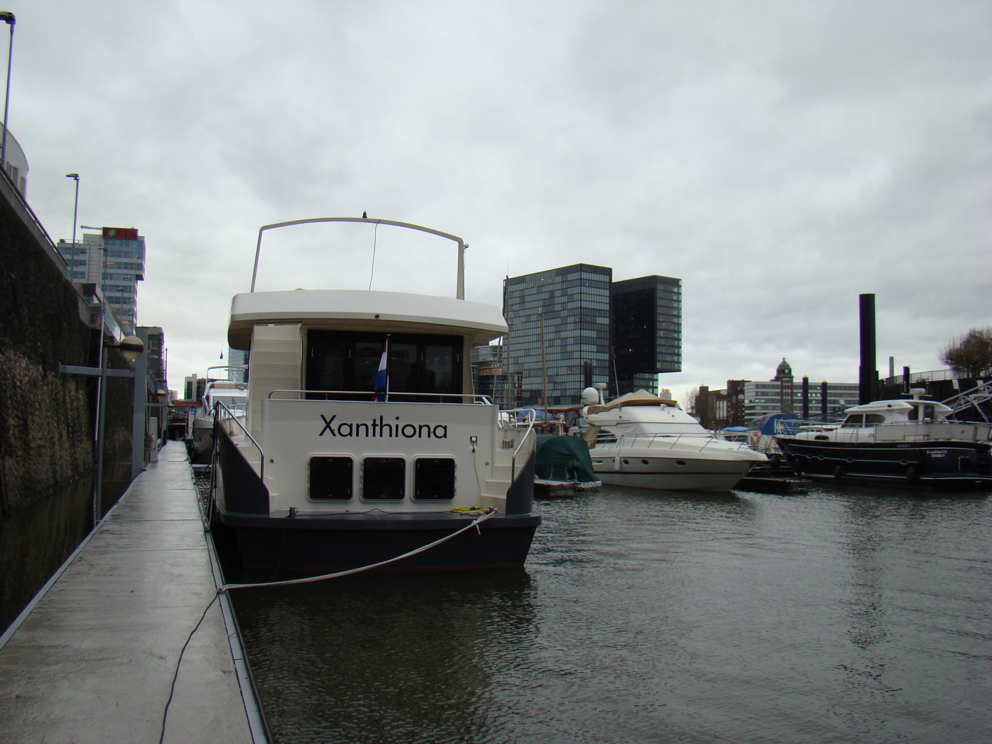 In de tussentijd ligt de Xanthiona er fraai bij in de marina Düsseldorf. Bij het maken van een paar foto’s merkte ik eigenlijk pas echt op hoe groot ie is, dit zie je vooral als je op een lage steiger er naast staat.
