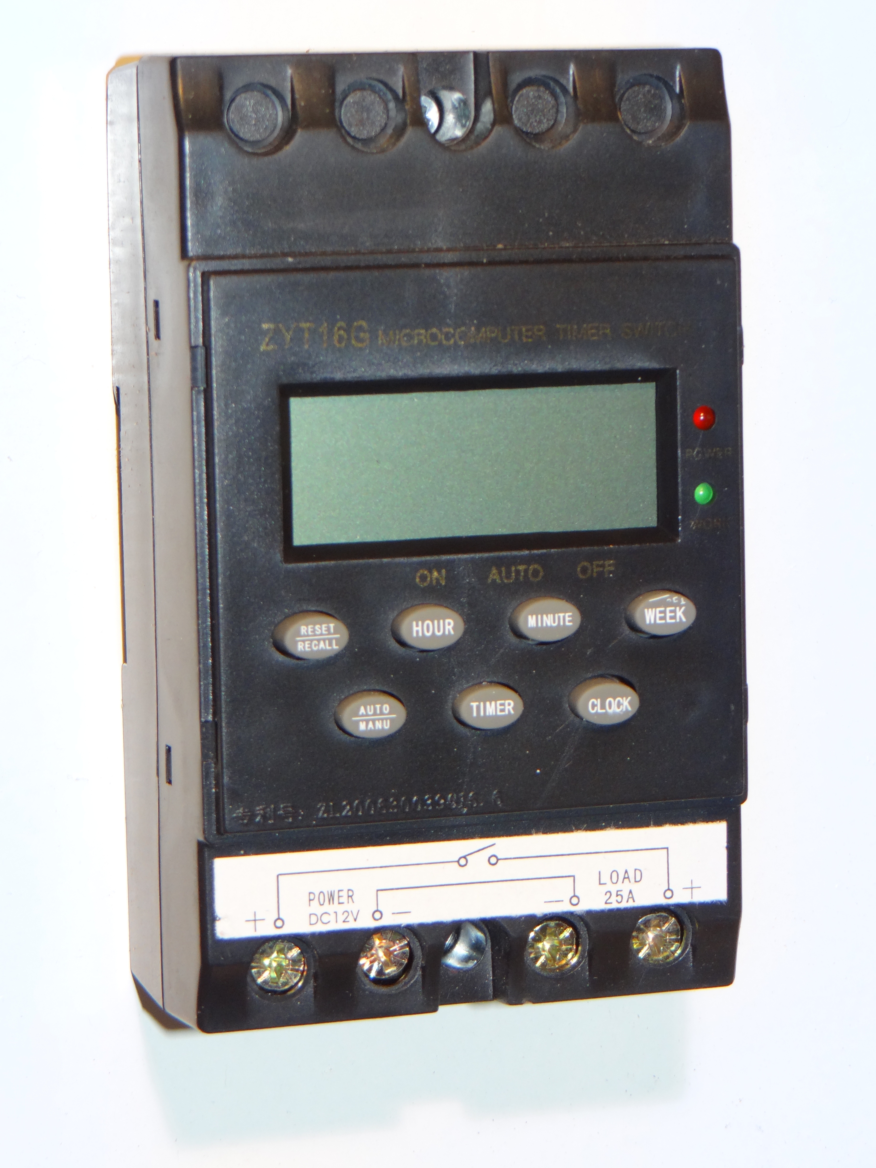 De Jabsco brandstofpomp pompt ca. 13 liter per minuut. Dat is 780 liter per uur. Met de 2 tanks van totaal 1760 liter, duurt het dus 2 uur en 15 min om 1 x de brandstof rond te pompen. Voor een goede werking van het brandstofreininigingssysteem wordt aanbevolen om de totale hoeveelheid van de tanks 3 x rond te pompen, dus totale benodigde tijd: 7 uur. De tijdklok wordt zo ingesteld dat minstens 1 x per week automatisch de brandstof gedurende de 7 uur wordt rondgepompt.