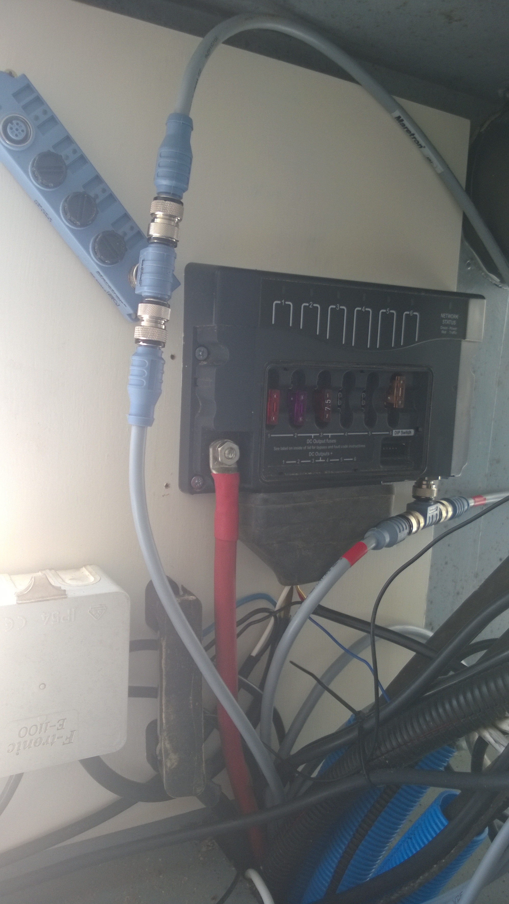 Verder heb ik de 2de monitor aangesloten, de bedrading aangebracht voor het op afstand bedienen (met sleutelschakelaar) van de centrale 24 V schakelaar, de 24 V schakelaar voor de motor en de 24 V schakelaar voor de navigatie. Ook heb ik nog diverse bedrading van de 24 V, het Czone systeem en de NMEA2000 gefatsoeneerd en definitief aangebracht.