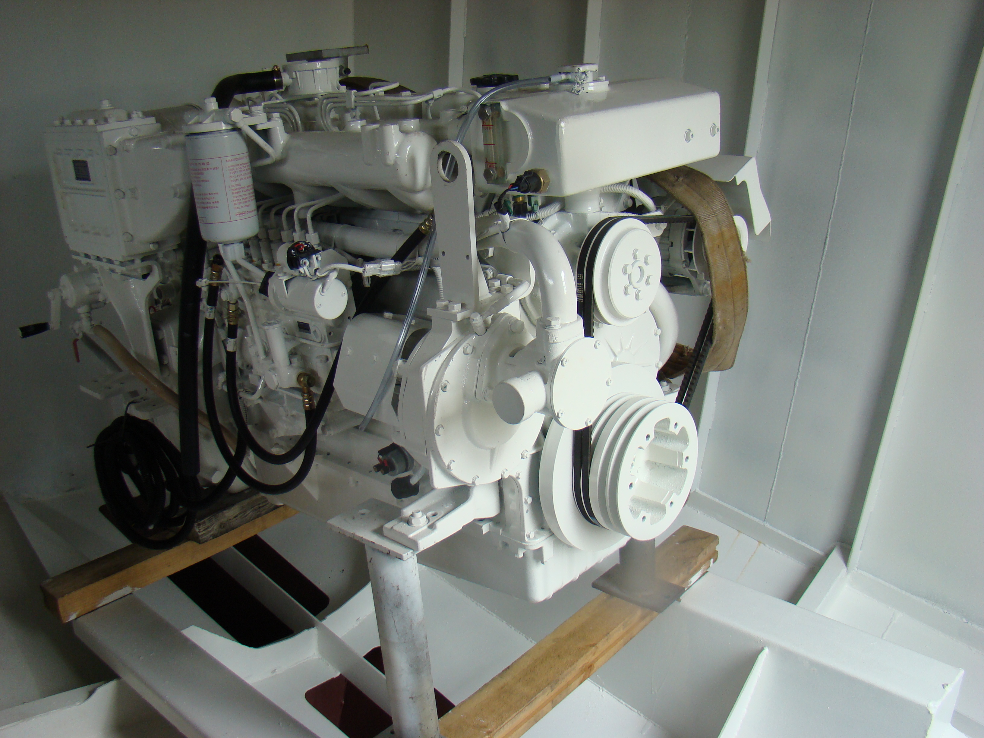 Ik heb nog overwogen deze motor te annuleren en voor een ander merk te kiezen, maar de keuze voor deze Doosan L086TIH was heel bewust vanwege zijn lage toerental en het verwachte gunstige brandstofverbruik, zeer goede levensduur en de weinige geluidsproductie. Nu annuleren en nog een andere motor zoeken levert misschien 3-4 weken winst, maar er zijn weinig van dit type motor leverbaar met dezelfde goede eigenschappen.