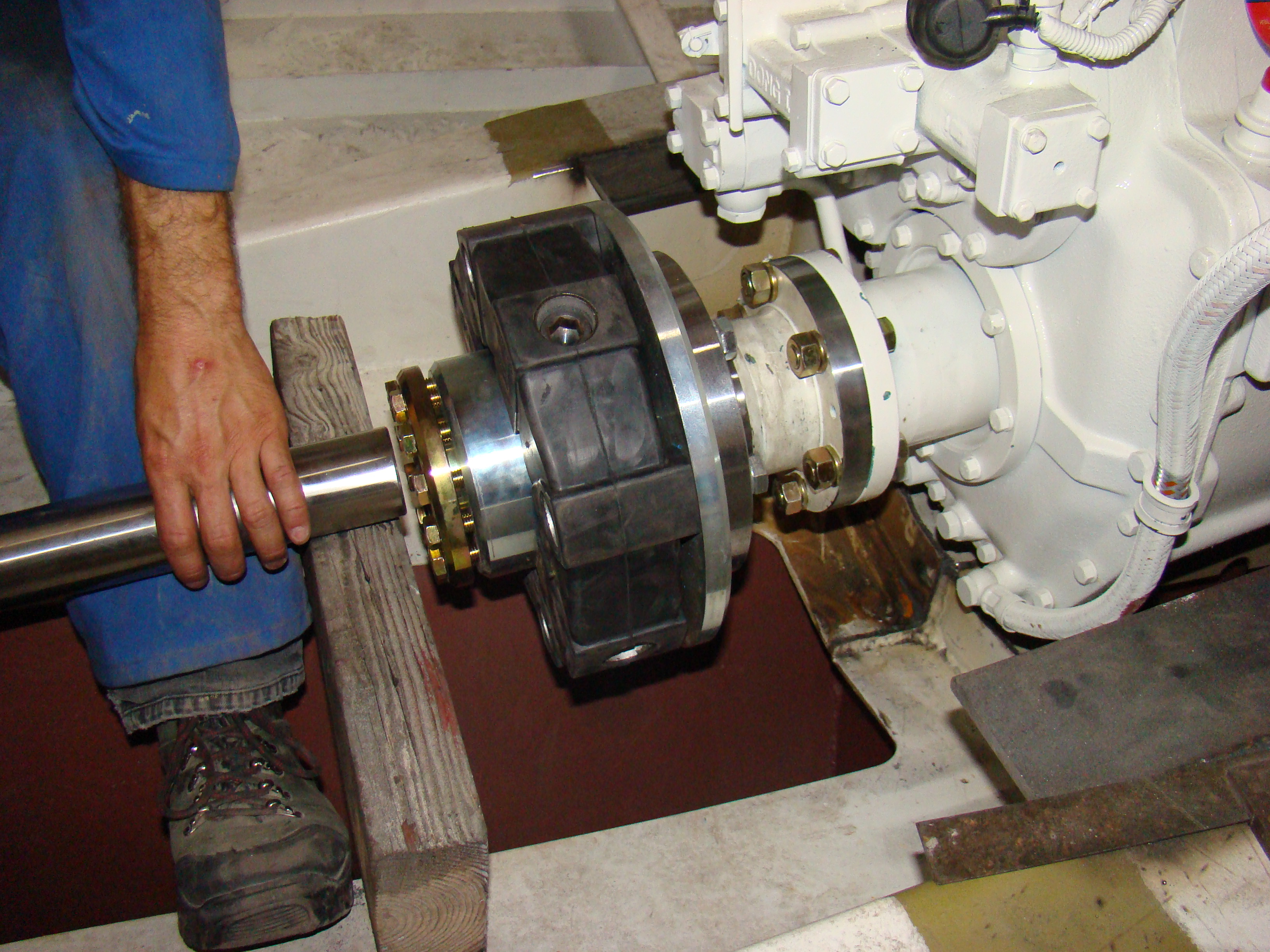 Gelukkig arriveerde de schroefas vorige week donderdag en kon Martin Pomp van MarHen Yachting eindelijk verder met de bouw van ons motorjacht Xanthiona. Vanaf vrijdag werd er met 4 man tegelijk aan gewerkt en het lijkt er nu echt op dat het nog een kwestie van weken is. Bij het uitpakken van de kist met motortoebehoren bleken er geen motorsteunen bijgeleverd te zijn, maar dat werd kordaat opgepakt door MarHen. De bij de motor geleverde flens paste niet op de Centaflex AM200 flexibele koppeling, maar ook hier werd snel een oplossing voor gevonden door in de buurt een aparte flens te laten draaien, je kunt hem op de foto onder goed zien.