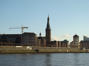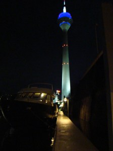 Ondertussen hielden we het verbruik van de motor bij en maakten ons wat zorgen of we wel of niet voldoende brandstof hadden, diverse rekenpartijen later besloten we voor onze gemoedsrust toch maar wat te tanken in Düsseldorf. Bij het langzaam de haven in varen hoorden we een tikkend geluid bij de schroefas of de keerkoppeling. We hebben eerst maar getankt en daarna in de haven rondjes gedraaid om uit te zoeken waar het geluid vandaan kwam. Bij wat sneller varen leek het geluid weg, dus zijn we de Rijn weer op gegaan, maar we waren er niet helemaal gerust op. Eigenlijk wilden we volgens plan zo ver mogelijk komen, maar na noch wat debatteren en proberen uit te zoeken wat het kon zijn, besloten we geen risico te nemen en te terug te varen naar Düsseldorf om daar een monteur er naar te laten kijken.