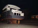 Na 13 maanden is ons motorjacht Xanthiona, een Almarine 1700, (eindelijk) te water. Op 1 oktober 2010 begon de bouw van de Xanthiona bij MarHen Yachting. Op dit weblog kun je lezen hoe de bouw de afgelopen maanden is verlopen. Uiteindelijk 6 maanden later dan gepland is de Xanthiona afgelopen woensdag 26 oktober te water gegaan. Een groot deel van de vertraging werd veroorzaakt door de verlate levering van de Doosan L086TIH motor, de overige vertraging is de min of meer normale uitloop die ontstaat door het tegenzitten van werk, materiaal, etc.