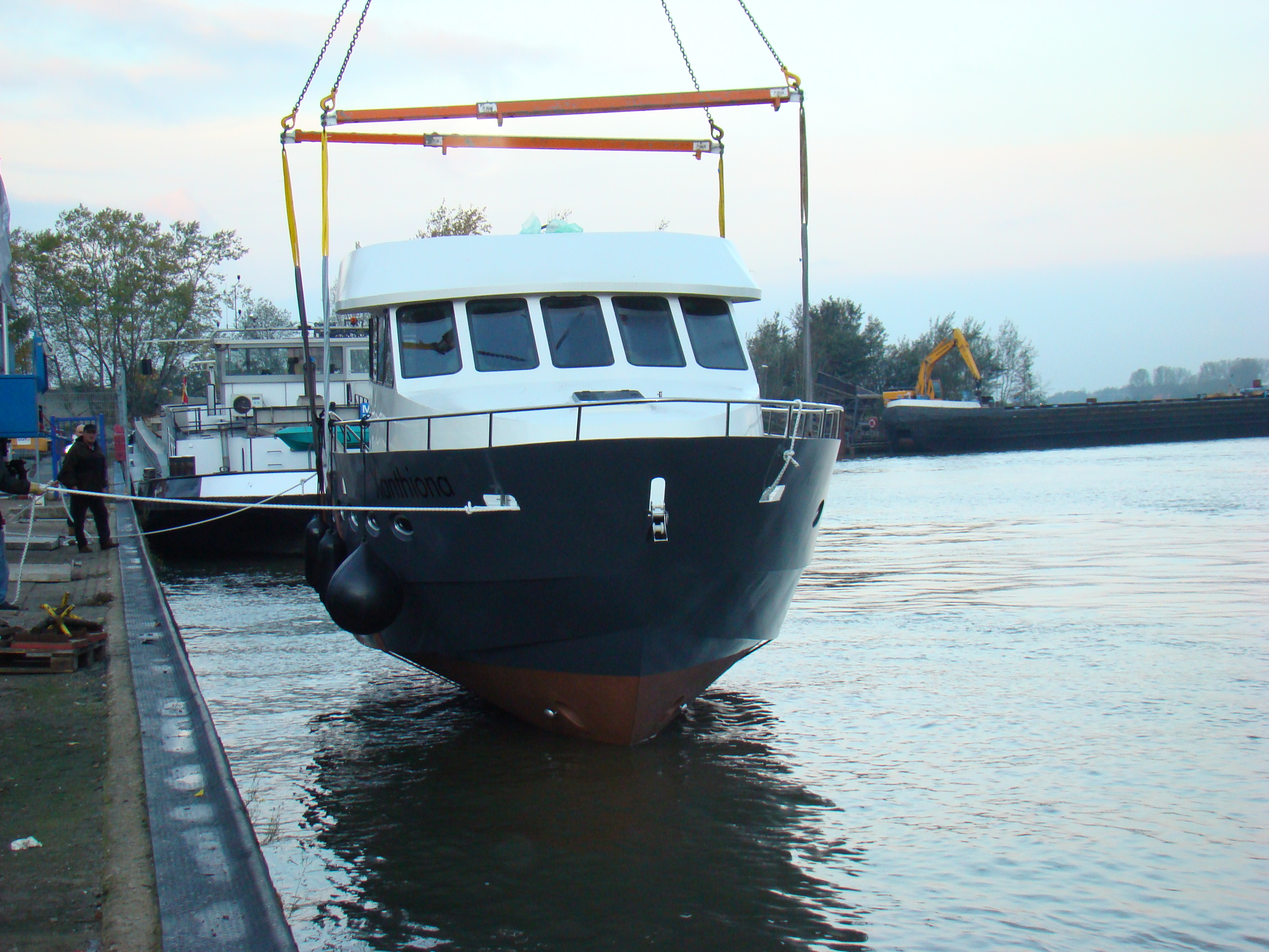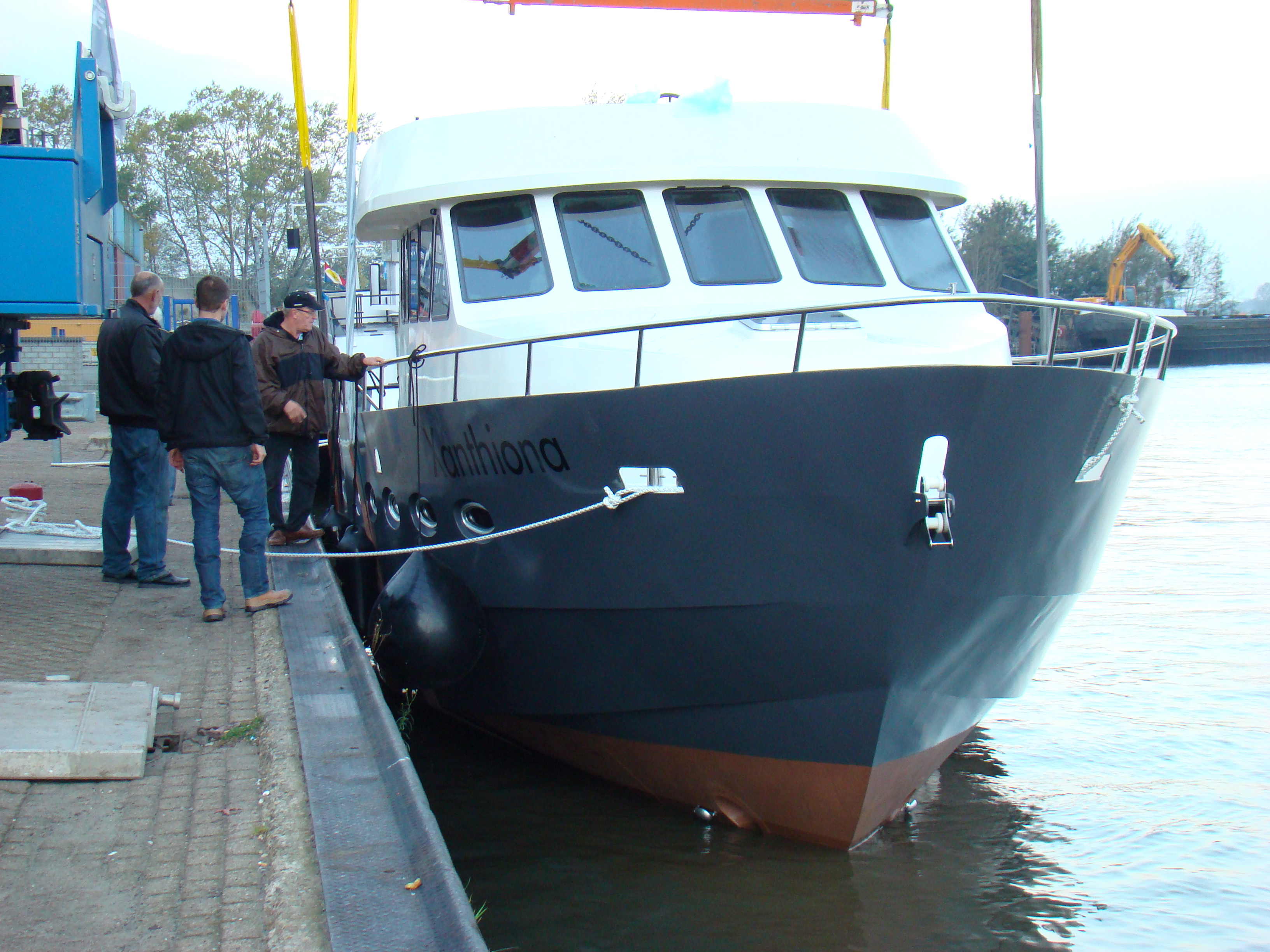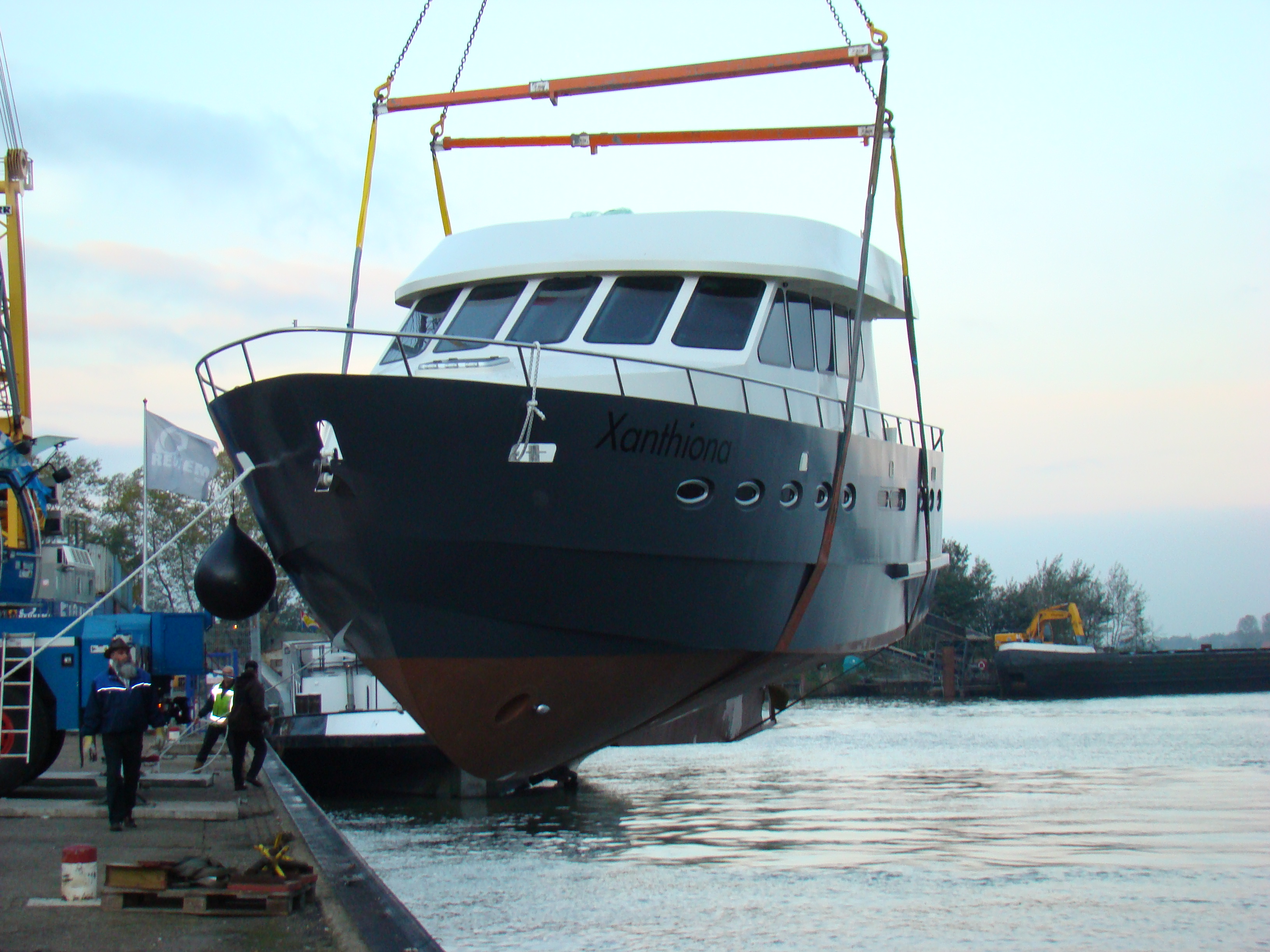 De voorlopige planning is dat de Xanthiona op 26 oktober in het water gaat. Er volgen dan uitgebreide proefvaarten door MarHen en op 31 oktober komt Vink Diesel de Doosan L086TIH officieel in bedrijf stellen. In de dagen erna gaan we de Xanthiona tot aan de grens bij Tolkamer brengen. Op vrijdag zal daar dan de schipper met het Rijnpatent aan boord komen (het Rijnpatent is verplicht voor jachten groter dan 15 meter op de Rijn) en dan is het nog 2 dagen varen naar Oberwinter, met op de 1e dg een tussenstop in Düsseldorf.