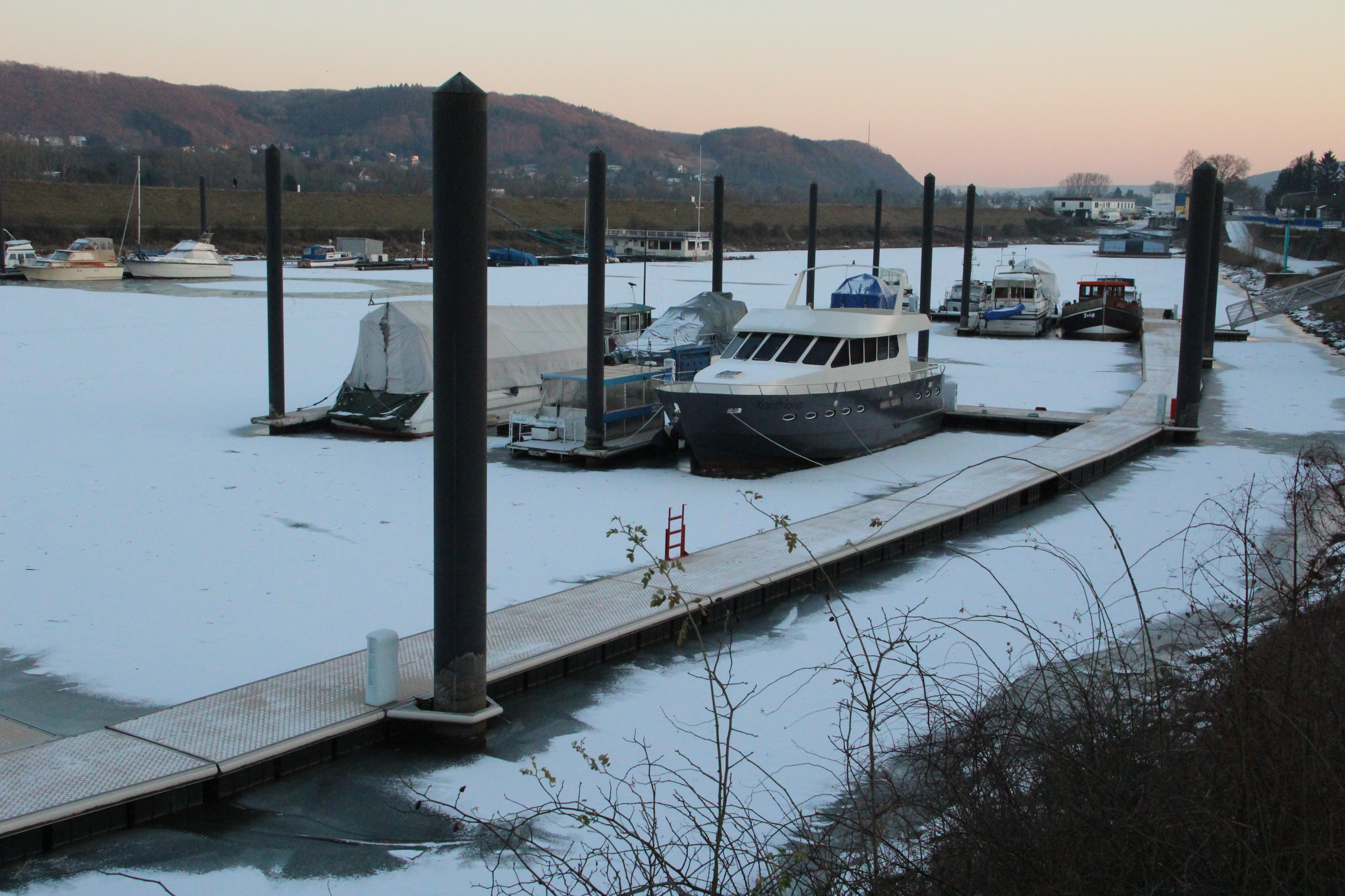 Wat was het koud in februari. 2 weken lang lag ons motorjacht Xanthiona vastgevroren in het ijs in de haven van Oberwinter. Op het koudst heb ik ’s ochtends – 16 C gemeten. De Roca 20 GTI-F CV kon de kou wel aan, ondanks dat de Xanthiona nog niet is ingetimmerd. De warmte was wel snel weg, de CV sprong regelmatig weer aan. Af en toe kraakte het ijs en bij de dooi hoorde je regelmatig de ijsschotsen tegen de romp aanslaan.