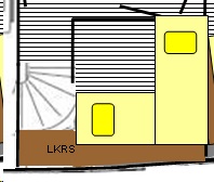 Het 2de idee van vandaag is om in deze kleine gastenkamer het bovenste (wegklapbare) bed dwars te plaatsen op het andere bed. De ruimte tussen de bedden kan dan ietsje kleiner worden gehouden. De wasmachine zou dan onder dit dwarse bed kunnen en mogelijk zou het dan makkelijker wegklapbaar te maken zijn. Je ziet het op de onderstaande tekening.