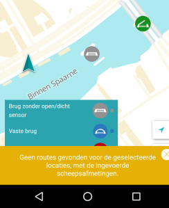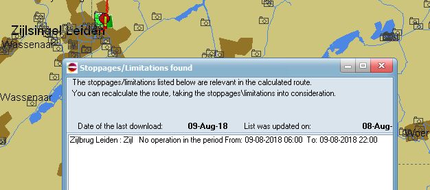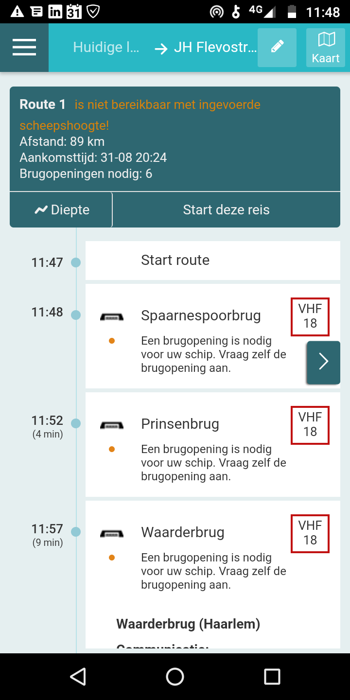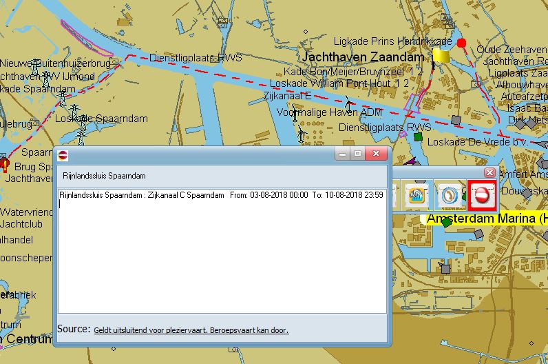Bij het bekijken van de detail gegevens op de site van RWS bleek dat er werkzaamheden waren en dat er voor 09.30 en na 16.00 uur door de recreatievaart niet gevaren kon worden, maar binnen die tijd dus wel. Ook kon ik vanuit Leiden niet verder naar Haarlem door werkzaamheden aan een bepaalde brug volgens de app.