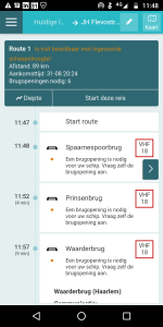 Nadat ik nogmaals een route probeerde te plannen van mijn ‘huidige locatie’ (dat was Haarlem op dat moment, net voor de laatste spoorbrug), was het wederom niet mogelijk naar Strand Horst te varen. Na feedback met Riverguide bleek dat de app rekening houdt met de AIS positie, zoals die op dat moment bekend is. Klaarblijkelijk, volgens het team, spoort dat niet met de actuele GPS positie. Door het verwijderen van het profiel van de Xanthiona, wordt er geen rekening meer gehouden met de AIS positie en wordt de GPS positie gebruikt voor ‘huidige locatie’. Nu was er wel een route berekend.