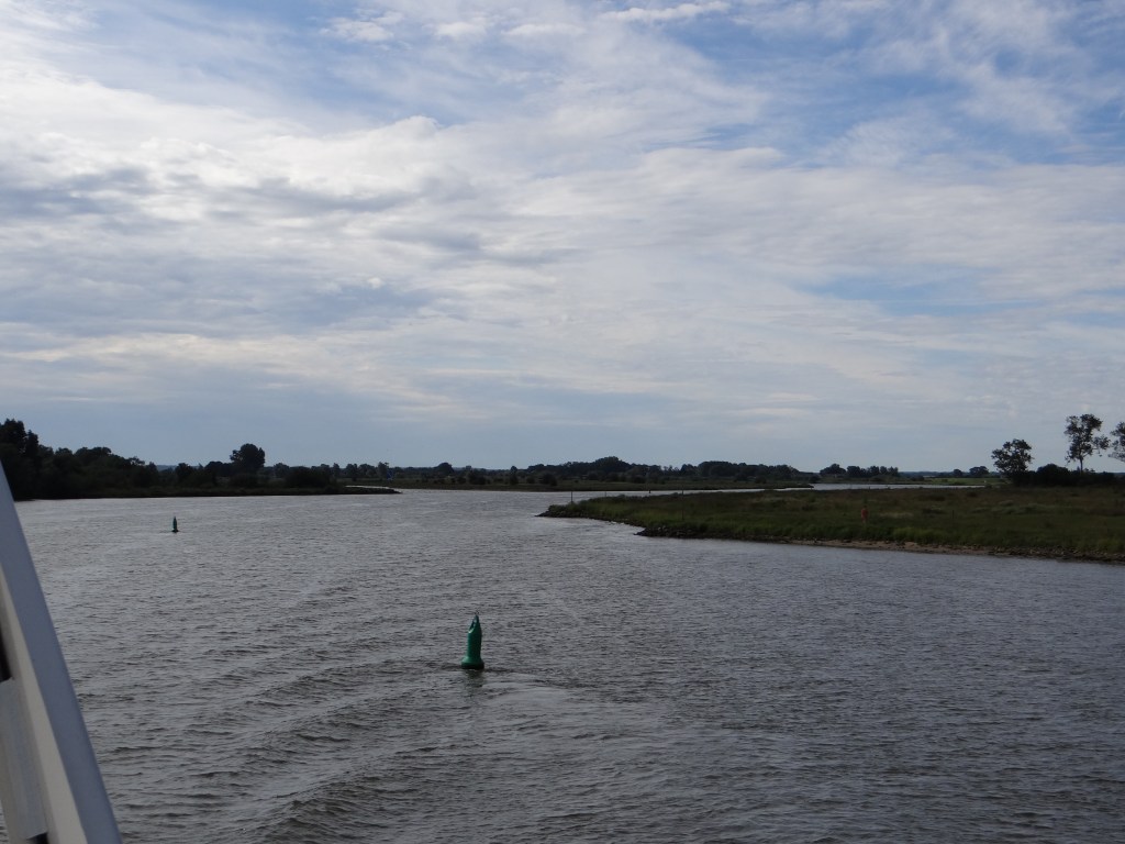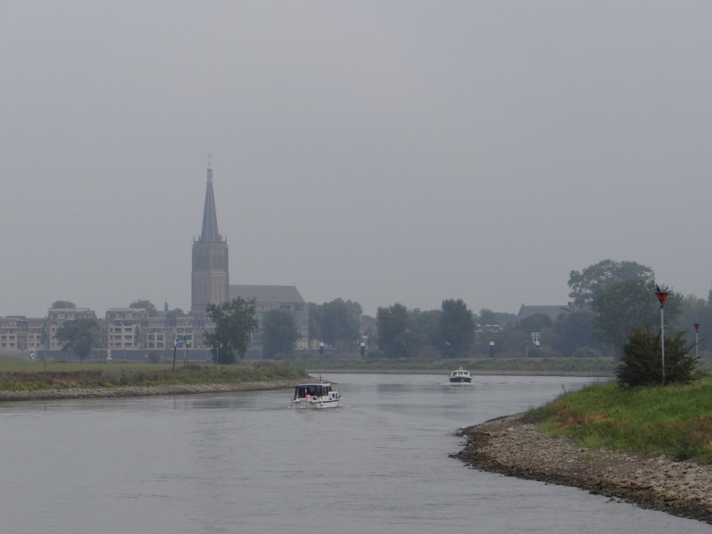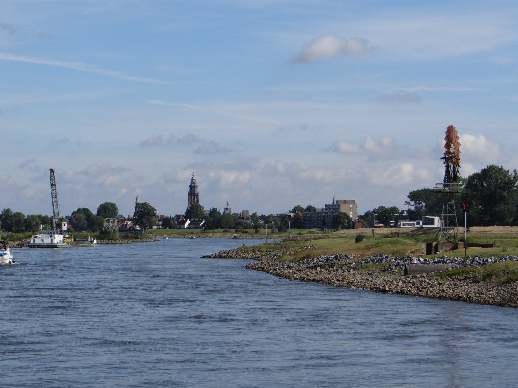Een bekende consumenten organisatie waarschuwt altijd dat het o zo spannend en gevaarlijk is op de IJssel vanwege de sterke stroming en de beroepsvaart, dat soms met blauw bord aan de ‘verkeerde’ oever vaart. We hebben dat niet zo ervaren, de IJssel is een mooie rivier, met 4 km/uur stroming, breed genoeg, weinig beroepsvaart waarvan een enkeling bij bepaalde bochten het blauwe bord voert. Niks aan de hand, rustig oversteken naar de andere kant en het vrachtschip stuurboord op stuurboord passeren.