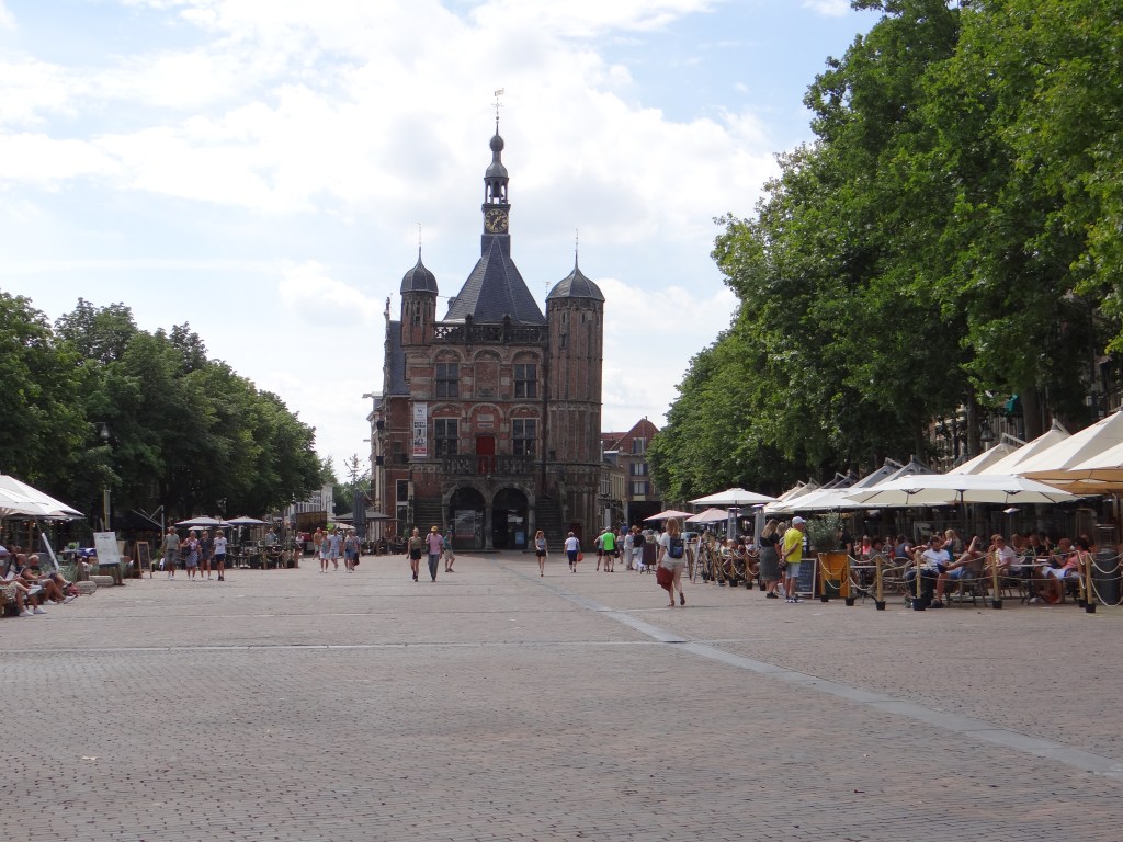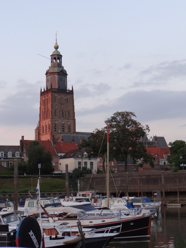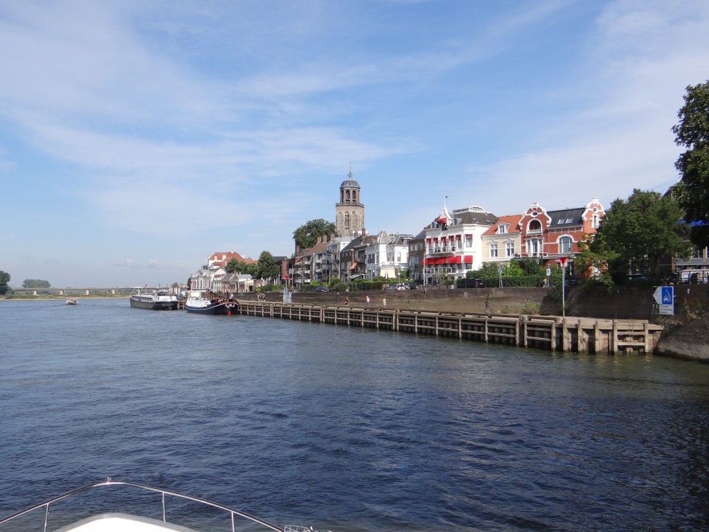 Voor Zutphen en Deventer heb ik een dag vooraf gebeld of er een ligplaats beschikbaar was. In Zutphen stond de vriendelijke havenmeester ons ’s ochtends om 11.00 uur al op te wachten en dirigeerde ons naar de enige vrije plek voor een 16.70 meter motorjacht. Zutphen is een slag groter dan Doesburg en heeft een fraai centrum met veel historische gebouwen en bezienswaardigheden. Echt de moeite waard.