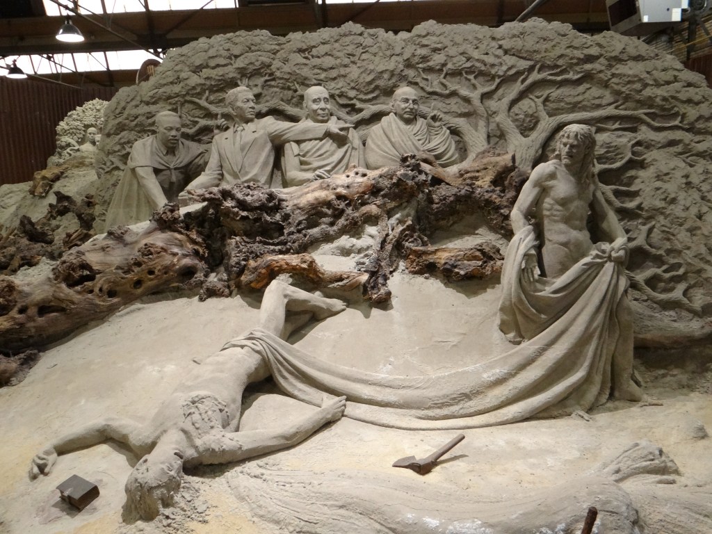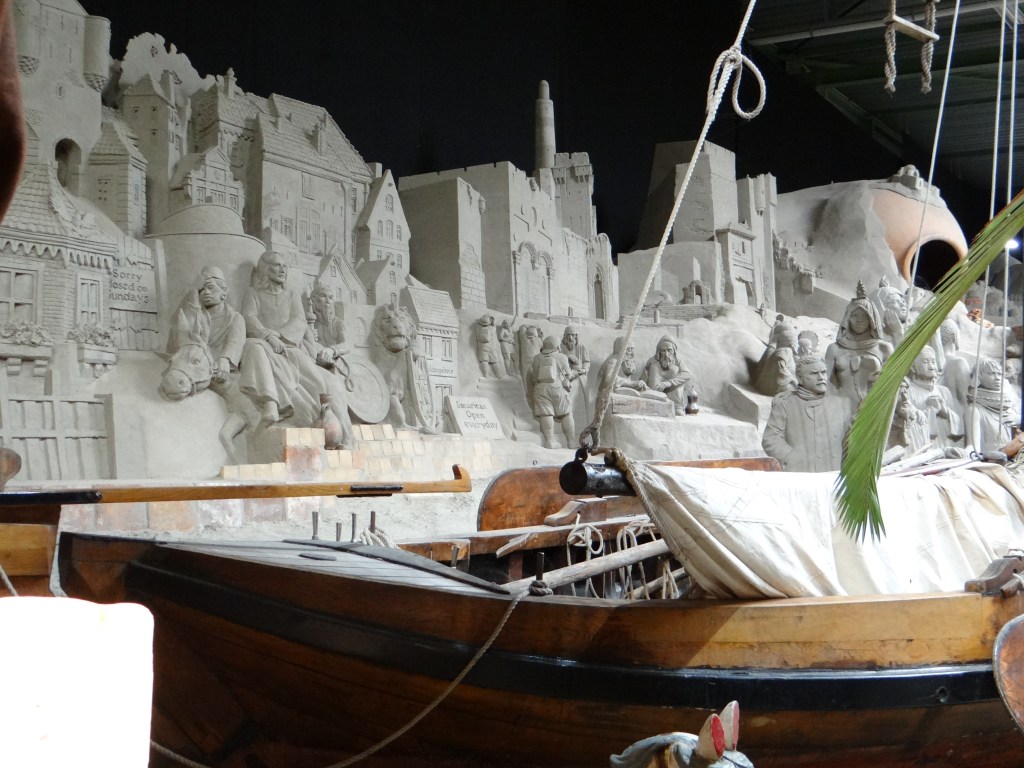 In Elburg hebben we de expositie Zandverhalen bezocht, dit is 1 van de grootste indoor zandsculpturen expositie ter wereld. Deze expositie is het grootste verhaal van onze tijd vormgegeven in Bijbelverhalen in zand, die historie, kunst en cultuur verbinden. Ongelooflijk wat de kunstenaars van over de hele wereld hier hebben uitgebeeld in zand, in combinatie met bouwmaterialen, levende bomen, industriele objecten en een stuk historie uit Elburg. Uitzonderlijk creatief, fascinerend en heel erg mooi. Dit is echt een aanrader om te bezoeken, zie Zandverhalen.nl.