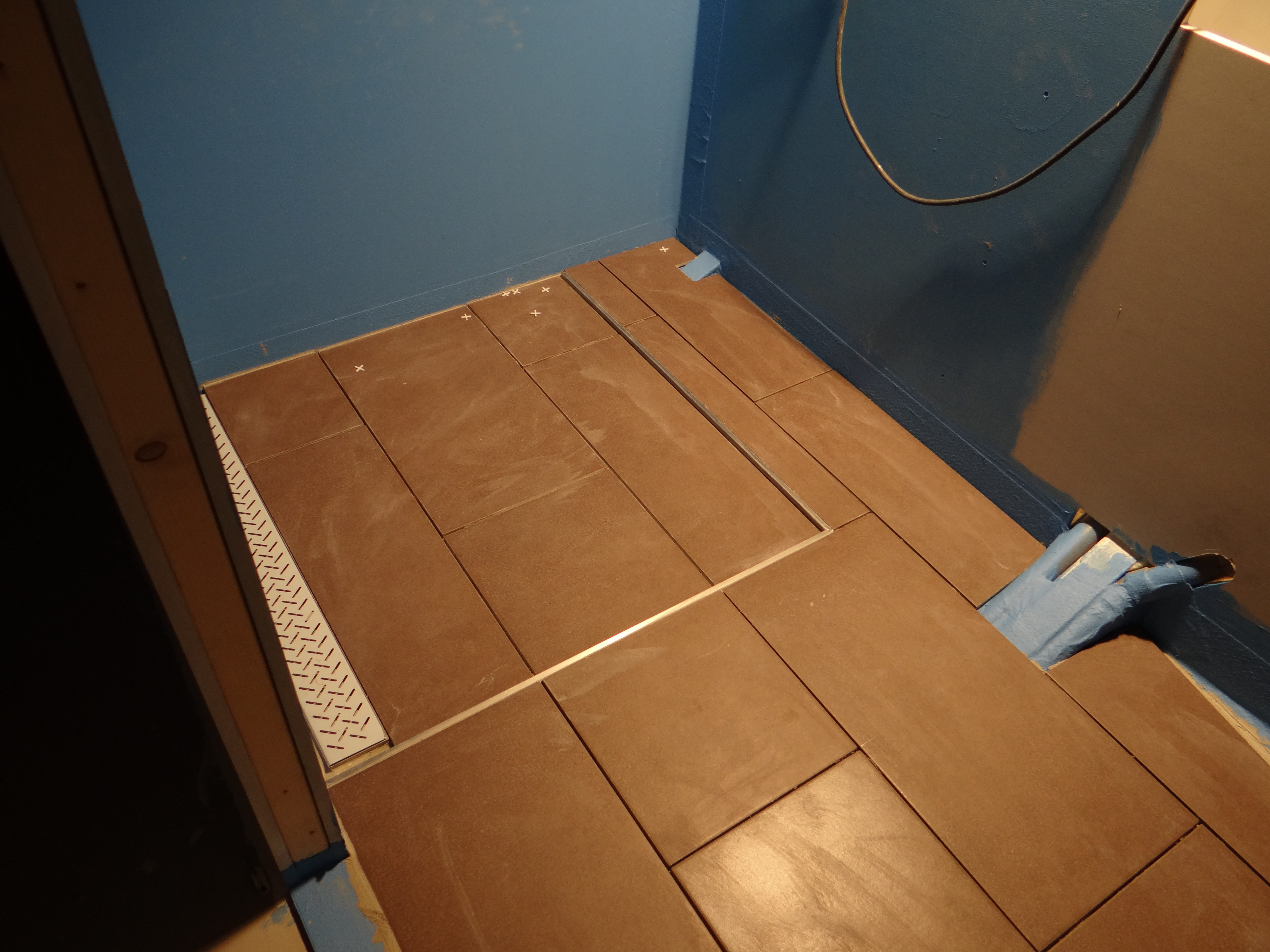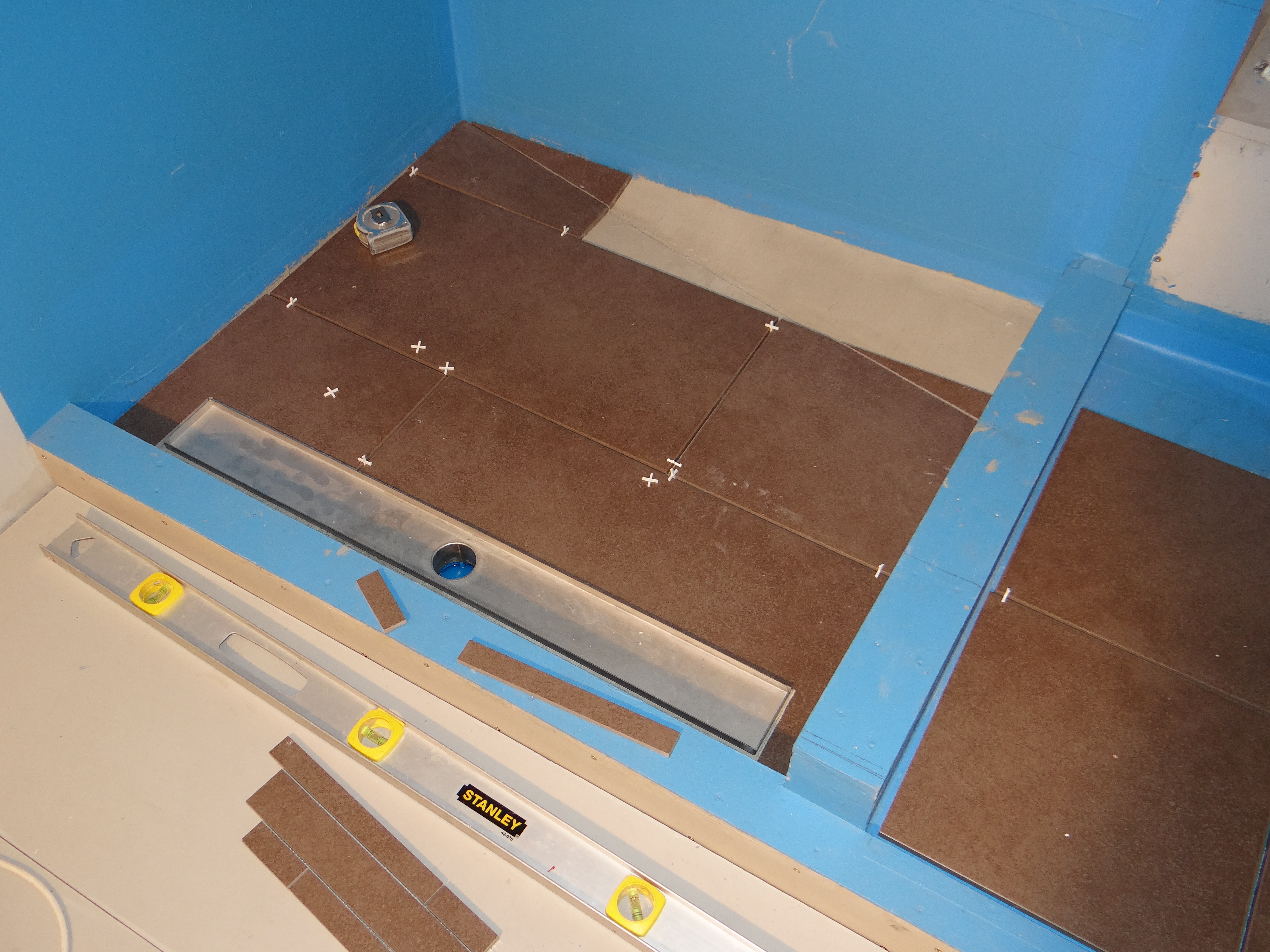 Gebaseerd op de ervaringen van het betegelen van 4 badkamers en een aantal toiletten, dacht ik dat het betegelen van de badkamer in achterkajuit van ons motorjacht Xanthiona ook wel soepel zou gaan. Niets was minder waar. Eerst had ik moeite om een vervangende diamantschijf te vinden voor mijn 8 jaar oude tegelsnijmachine. Nadat ik die via een gespecialiseerd ijzerwarenzaak had gevonden, bleek op zondag deze toch niet te passen. Van ellende maandag maar een nieuwe tegelsnijmachine gekocht en daarmee aan de slag gegaan.