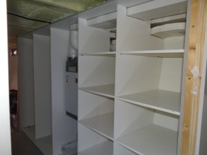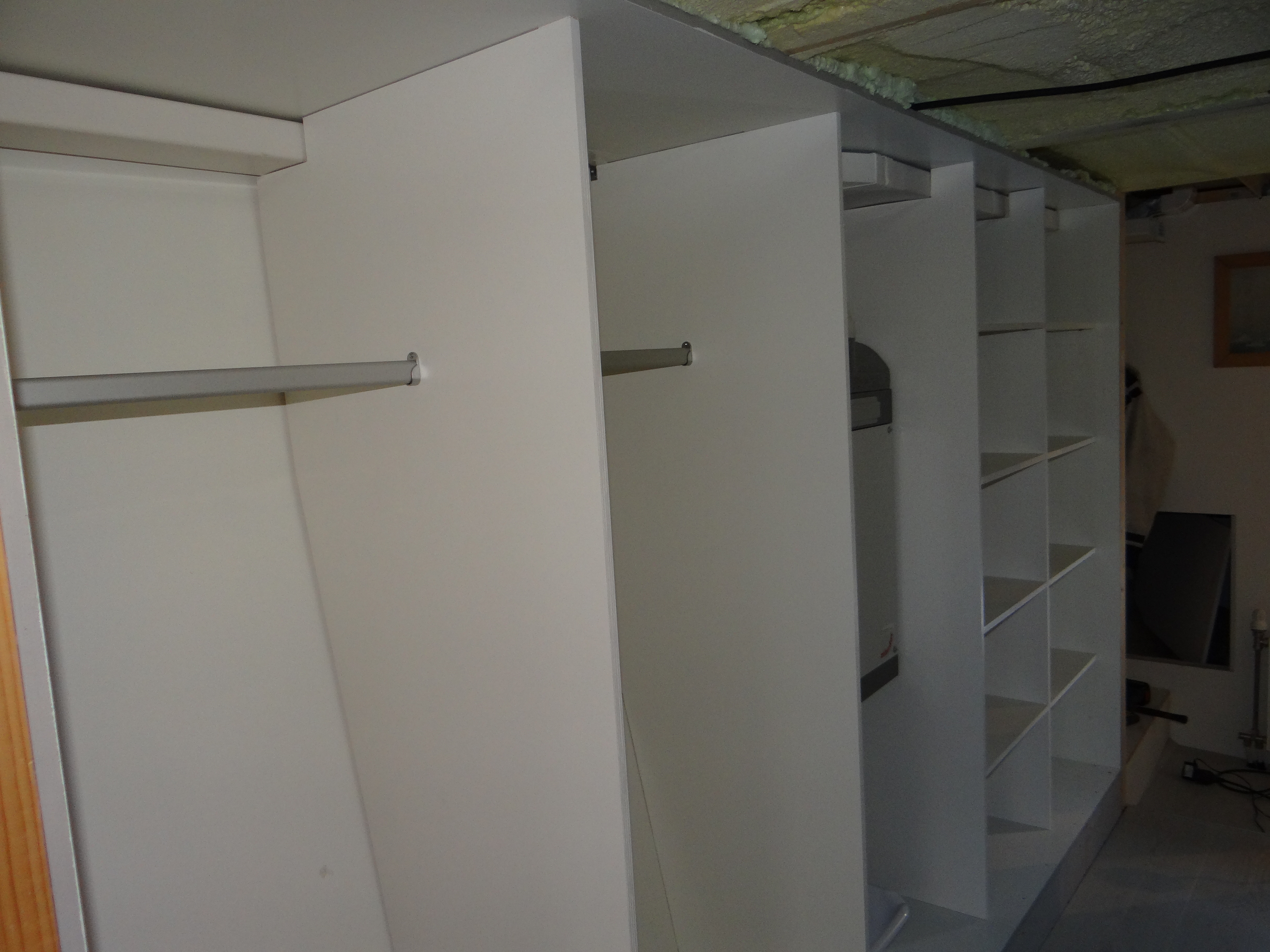 De WTW is nu weggewerkt in de kast in de doorloop naar de achterslaapkamer. Er komen nog schuifdeuren voor. De kast heeft een deel voor hangkleding direct naast de achterslaapkamer en een deel met legplanken naast de hal. In dat deel kunnen zaken als beddegoed en schone badlakens worden opgeborgen.