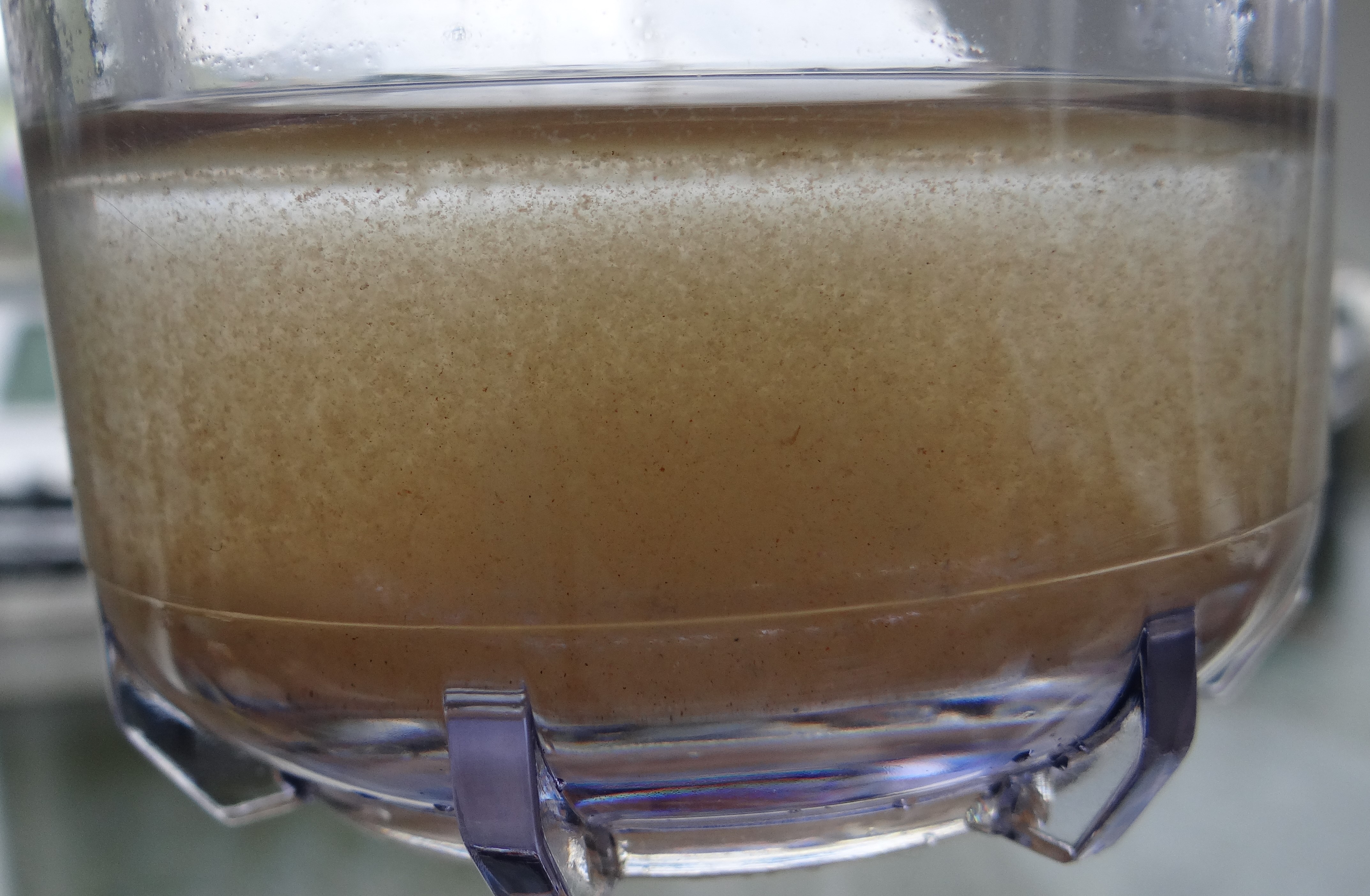 Even schudden: zie bijgaande foto: niet zo fris. Er wordt nu al 9 maanden op de boot gewoond en elke week wordt er drinkwater getapt. Grote vraag is nu: komt deze troep van aanslag/rotzooi in de tank of komt het mee met het drinkwater van de haven?