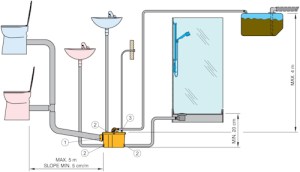 Nou wil ik standaard (huis) sanitair gebruiken en dat heeft geen opvoer/afvoerpomp, dus dat moet anders opgelost. Ook mag je niet overal lozen op het oppervlaktewater, er moet dus een