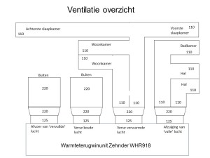 Ik ben wel benieuwd hoe het gaat met de warmte in de slaapkamers. Als ik ’s winters namelijk de verwarming in deze kamers op laag houdt, dan zal waarschijnlijk door de WTW verse en enigszins verwarmde lucht de slaapkamers in worden geblazen en zal vermoedelijk de temperatuur daar stijgen. Hoeveel is nog te bezien.