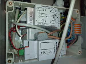 De toets zorgt voor de aansturing van de juiste klep op de verdeler via de verwarmingsmodule. Bijna alle onderdelen van het huisautomatiseringssysteem zijn van Zennio, daarom heb ik in dit geval ook gekozen voor de Zennio HeatingBox met 4 uitgangen van 230 V. Ook heeft de HeatingBox een functie die onderkent of alle kleppen gesloten zijn of dat 1 van de 4 open is. Op het moment dat er warmte gevraagd wordt in 1 van de kamers, gaat de juiste klep open en stuurt de Heatingbox een signaal naar een relais die de CV ketel/pomp aan zet. Zodra alle kleppen gesloten zijn stuurt de Heatingbox weer een signaal naar het relais om de CV ketel uit te zetten.
