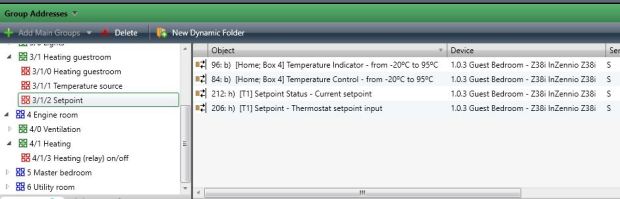 Om nu de temperatuur via de Z38 touchscreen te kunnen regelen moet er nog een verwarmingsmodule in het KNX systeem worden opgenomen die op zijn beurt de elektro-thermische kleppen voor de individuele kamers bij de CV-verdelers aanstuurt. En er moet nog een hoop worden geprogrammeerd via de ETS software om alle modules met elkaar te laten communiceren.