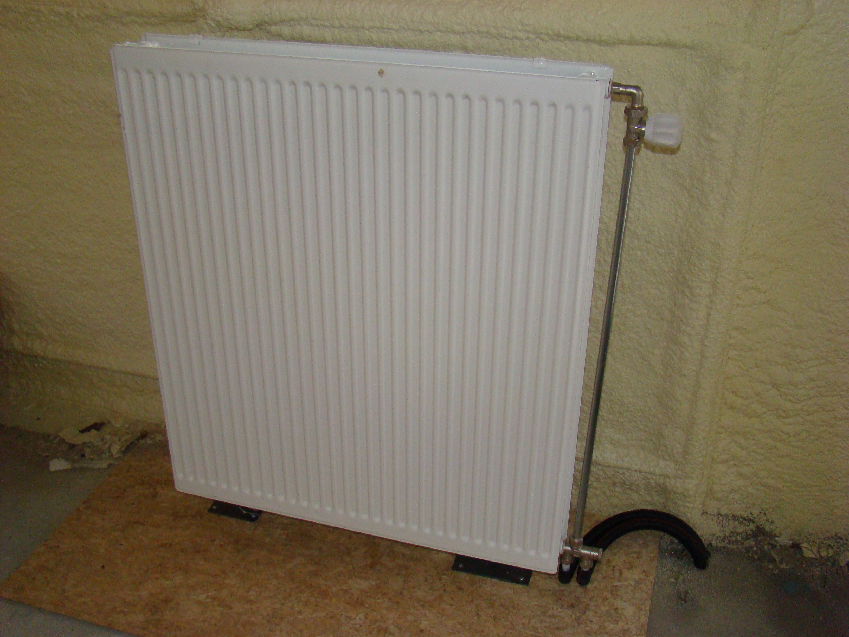 Een aantal van de tijdelijke radiatoren heb ik inmiddels vervangen voor definitieve radiatoren. Aanvankelijk dacht ik alleen convectoren van Jaga te installeren, maar deze hebben weinig water inhoud. De CV ketel van Roca (Gavina 20, combi) is een oliegestookte CV en het is beter voor de CV ketel om gedurende een wat langere tijd te branden in plaats van telkens heel kort. De ketel brandt veel schoner als deze een tijd langer door brandt. Dus uiteindelijk toch gekozen voor de ‘ouderwetse’ radiatoren. Ik heb al eens beschreven dat ik ook vloerverwarming heb overwogen, maar door de geringe stahoogte was dat geen optie.