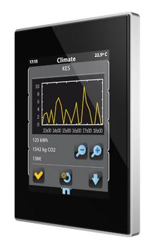 De touchscreen schermen die al in de diverse kamers waren geplaatst voor het schakelen van het licht, zijn via het ETS4 softwareprogramma uitgebreid met een toets om de temperatuur in te stellen.