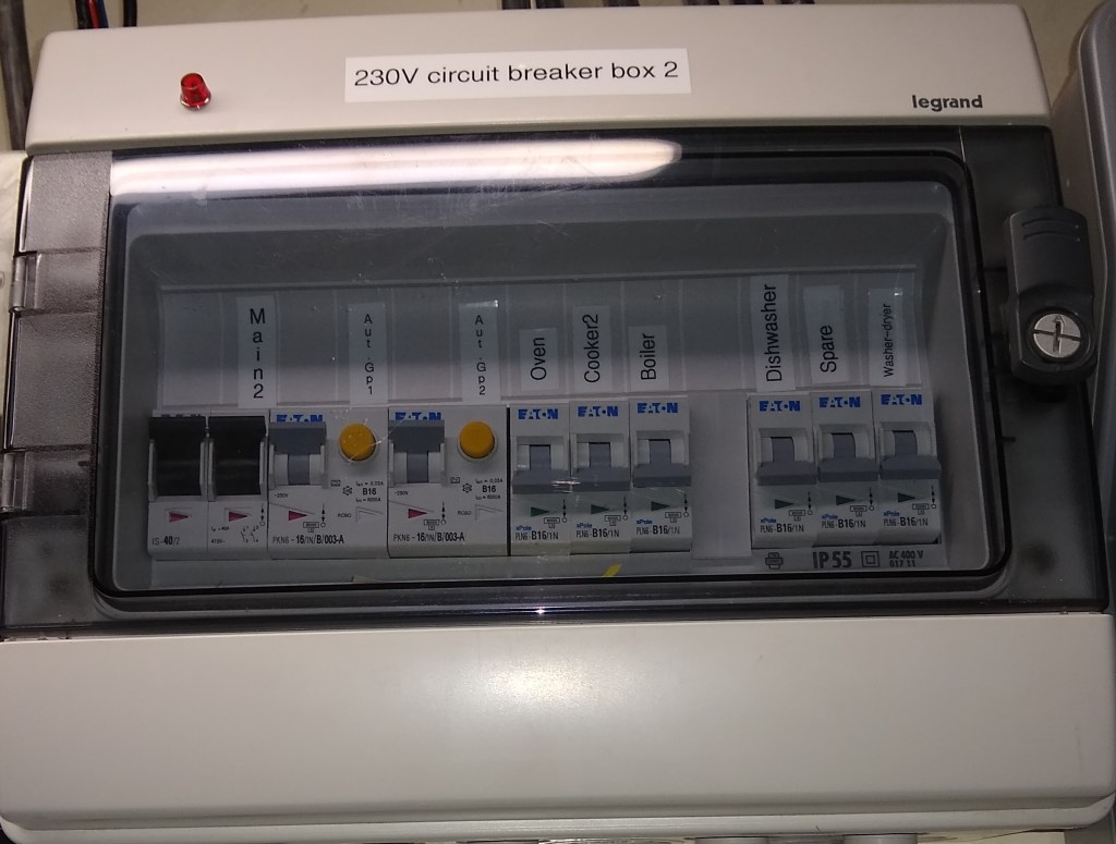 Bij de ‘ignore AC’ optie had ik in eerste instantie iets over het hoofd gezien. Als namelijk de walstroom afschakelt, schakelt ook de 2e uitgang van de Quattro af. Op die 2e uitgang zitten de zware gebruikers, zoals de oven, vaatwasser, wasmachine, etc. met een eigen groepenkast aangesloten. De daarop aangesloten apparatuur kan ik dan niet meer gebruiken. Erg lastig. Een mogelijkheid om dit op te lossen is, de groepenkast met zware gebruikers ook op de 1e uitgang van de Quattro aan te sluiten. Maar er is ook een andere oplossing, kom ik later op terug