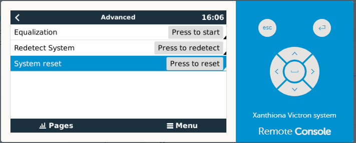 Gelukkig kan ik dankzij de Victron GX, het centrale brein in het elektrisch systeem, veel uitlezen op afstand en ook de Quattro resetten. Voordat ik dat doe, controleer ik via het VRM nog een keer de instellingen van de Quattro. Zie hieronder.