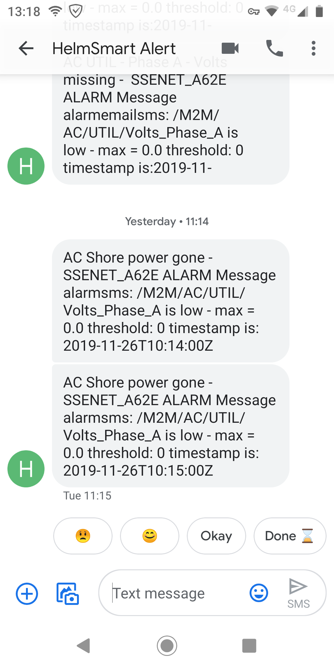 Jammer dat de alarmen van de Venus GX alleen via email verlopen. Dat is het voordeel van de SeaSmart, die alarmeert via SMS. De SMS van SeaSmart hoor ik direct, maar ik zit niet continu naar mijn email te kijken. Voorlopig blijft de SeaSmart module nog opgenomen in het systeem, mede omdat ik de overzichten met de meterstanden op HelmSmart en de grafieken van Freeboard veel fraaier vind dan de grafische informatie van de Venus GX.