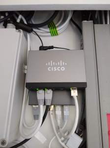 Hiermee kom ik dan weer op het probleem dat de switch niet genoeg poorten heeft, bovendien is de switch geen PoE (power over ethernet), waarmee via de ethernetkabel het aangesloten apparaat van stroom wordt voorzien (meestal 12 V). Nu gebruik ik losse PoE adapters van 12 V om de Teltonika RUT950 en de wifi repeater van stroom te voorzien. Op het achterdek en in de motorruimte zijn cameras gemonteerd, die ook gebruik maken van PoE. Totaal dus 4 PoE gebruikers, mogelijk 5 met de 2e repeater. De Cisco switch is geen PoE switch, maar gelukkig wel 12 V. Heel veel PoE switches zijn 230 V of 48-56 V, waarvoor je een 230 V adapter nodig hebt. Veel ruimte is er niet op het paneel en ik wil eigenlijk geen extra 230 V aansluiting maken. Ondertussen heb ik het hele internet afgestruind naar een mini of compacte PoE switch op 12 V, met maximaal 6 of 8 poorten, echter weinig kans. Of ze kosten vele honderden euros, of ze zijn 230 V of gebruiken een 230 V stroomadapter. En de meesten zijn te groot voor het paneel in de keuken. De enige optie lijkt een betaalbare mini PoE switch er bij plaatsen, die dan wel een 230 V stroomadapter heeft en ook die moet ik op het paneel kwijt. Hier ga ik nog even over na sudderen. Eerst eens proberen de camera op het achterdek aan de praat te krijgen.