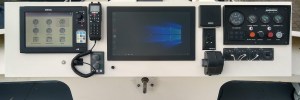 Echter bij het uitproberen en ontwerpen van het nieuwe dashboard bleek dat het grotere stuurwiel een obstakel wordt met het zicht op het middelste scherm, waar de kaartnavigatie en AIS op wordt weer gegeven. Nagedacht om het scherm naar links of rechts te verplaatsen, maar omdat er de meest belangrijke informatie op staat, moet dat toch recht voor de schipper in het directe gezichtsveld zijn. Heeft er nog iemand een splinternieuw 80 cm stuurwiel nodig?